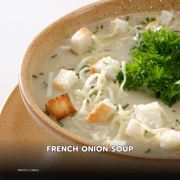 ซุปหัวหอมฝรั่งเศส อบพร้อมชีสด้านบน