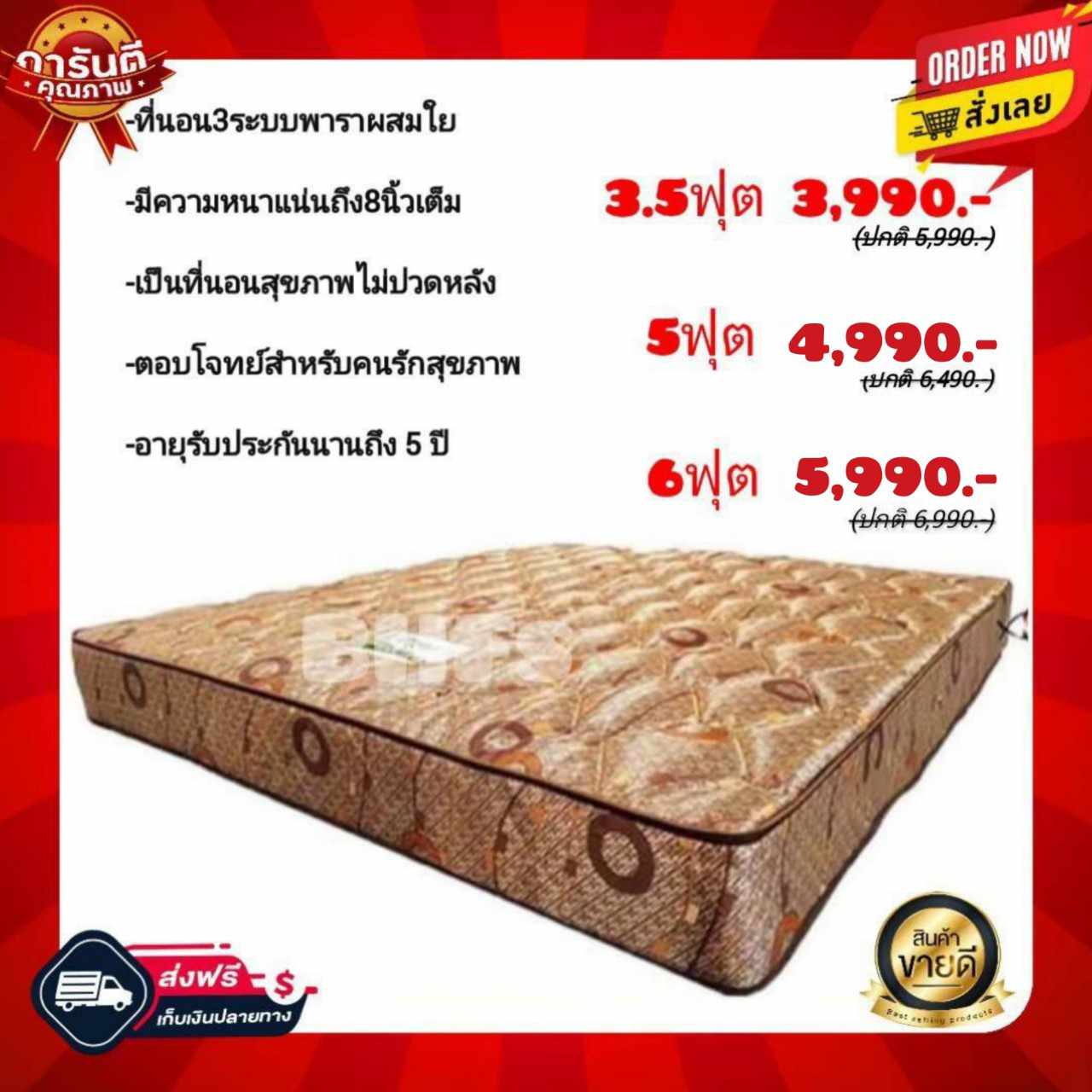 กำลังหาที่นอนสำหรับเตียงไซส์ 6 ฟุต งบ 20,000 บวกลบค่ะ - ไม่ชอบที่นอนที่นุ่มมากเกินไป ชอบให้ออกไปทางแน่นๆหน่อยแต่ไม่ต้องแข็งมาก - ปกติเป็นภูมิแพ้อย่างหนัก เลยต้องการหาฟูกที่ไม่สะสมไรฝุ่น - เปลี่ยนผ้าปู