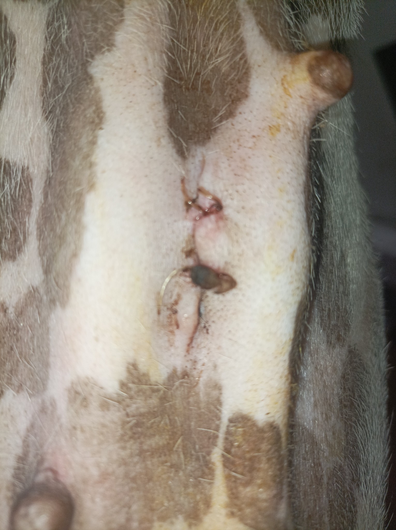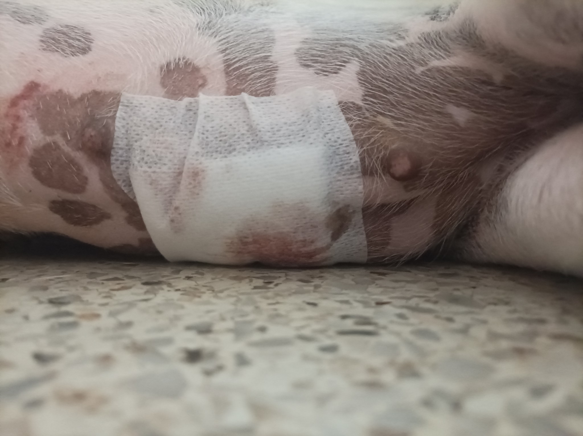 ช่วยด้วยค่ะแผลทำหมันสุนัขตัวเมียมีน้ำใสๆปนเลือดออกมาตรงรอยเย็บ