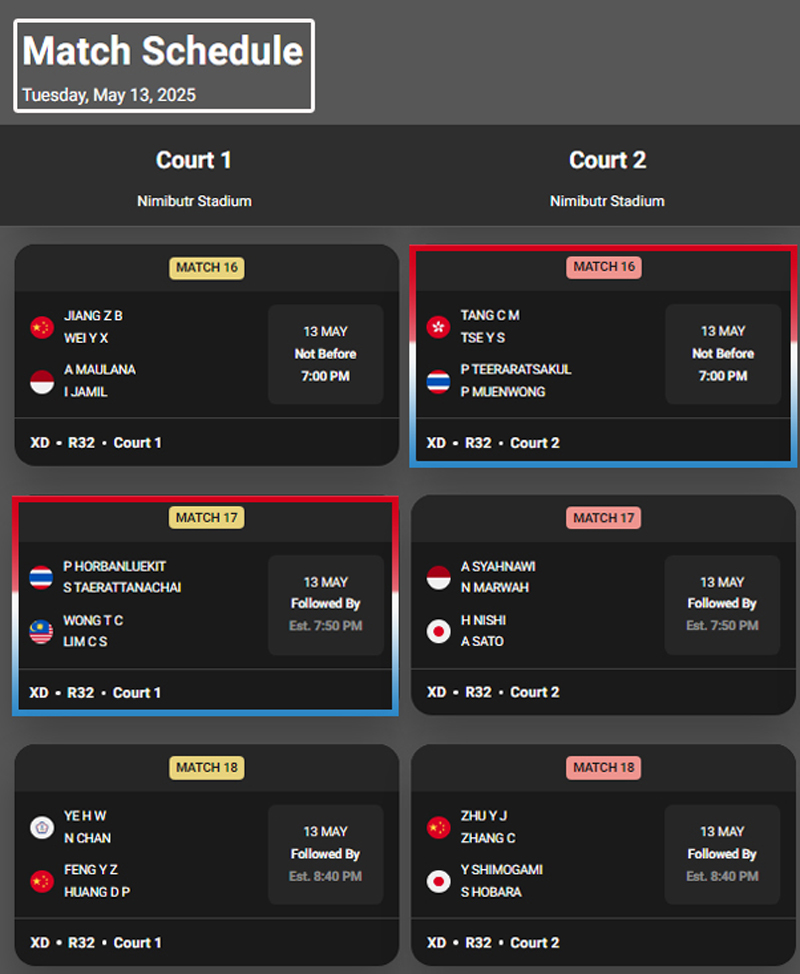 • โปรแกรม/ผลการแข่งขัน : รอบคัดเลือก & รอบ 32 [XD] (13 พ.ค. 68)