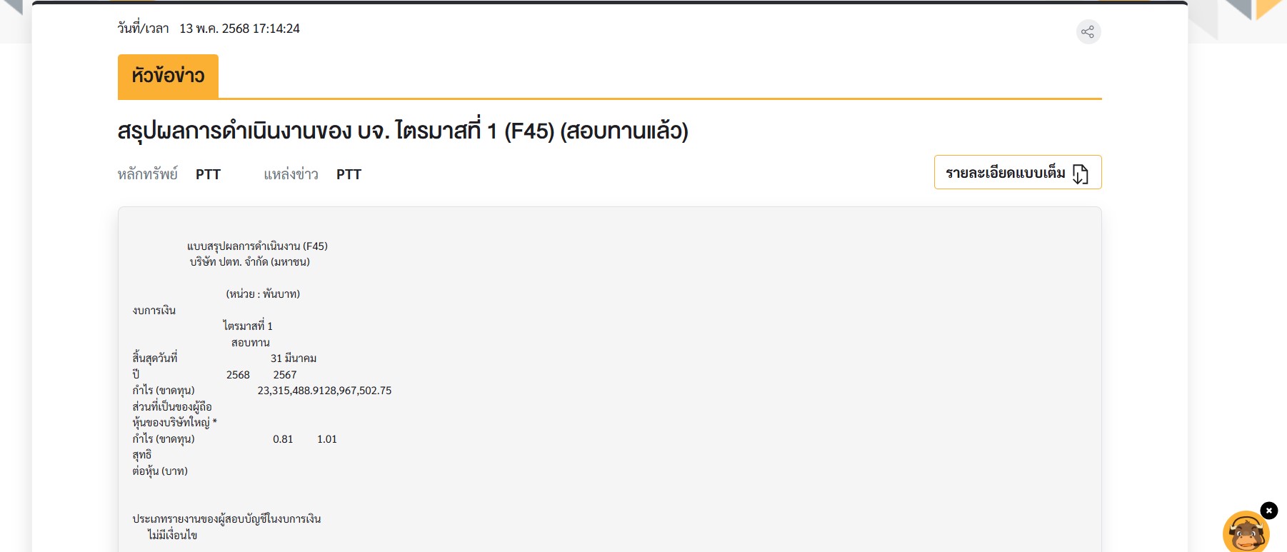 มาแล้วพี่ จ๋าาาา งบ หุ้น PTT ไตรมาสแรก ของปี 2568 !!!