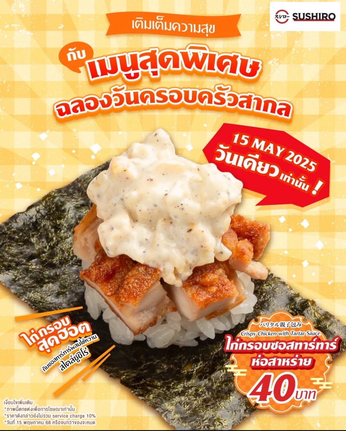 วันเดียวเท่านั้น!! Sushiro จัดเมนูพิเศษ "ไก่กรอบซอสทาร์ทาร์ห่อสาหร่าย" คำละ 40 บาท