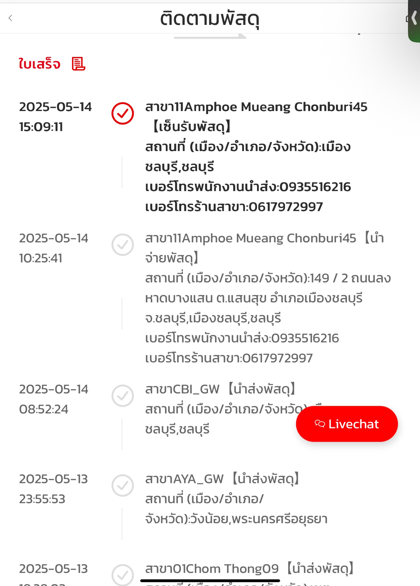 สั่งพัสดุไปแล้ว ขนส่งเซ็นรับให้เองไม่เอามาส่ง โทรไปบอกส่งไม่ทีนจะเอามาให้พร่งนี้ พรุ่งนี้จนเย็นยังไม่มา โทรไปก็ไม่รับแล้วฮัลโหล อะไรจะขนาดนั้น หลายรอบแล้วนะขนส่งนี้ สั่งของวันที่ 23 ธันวาคม ขึ้นสถานะส
