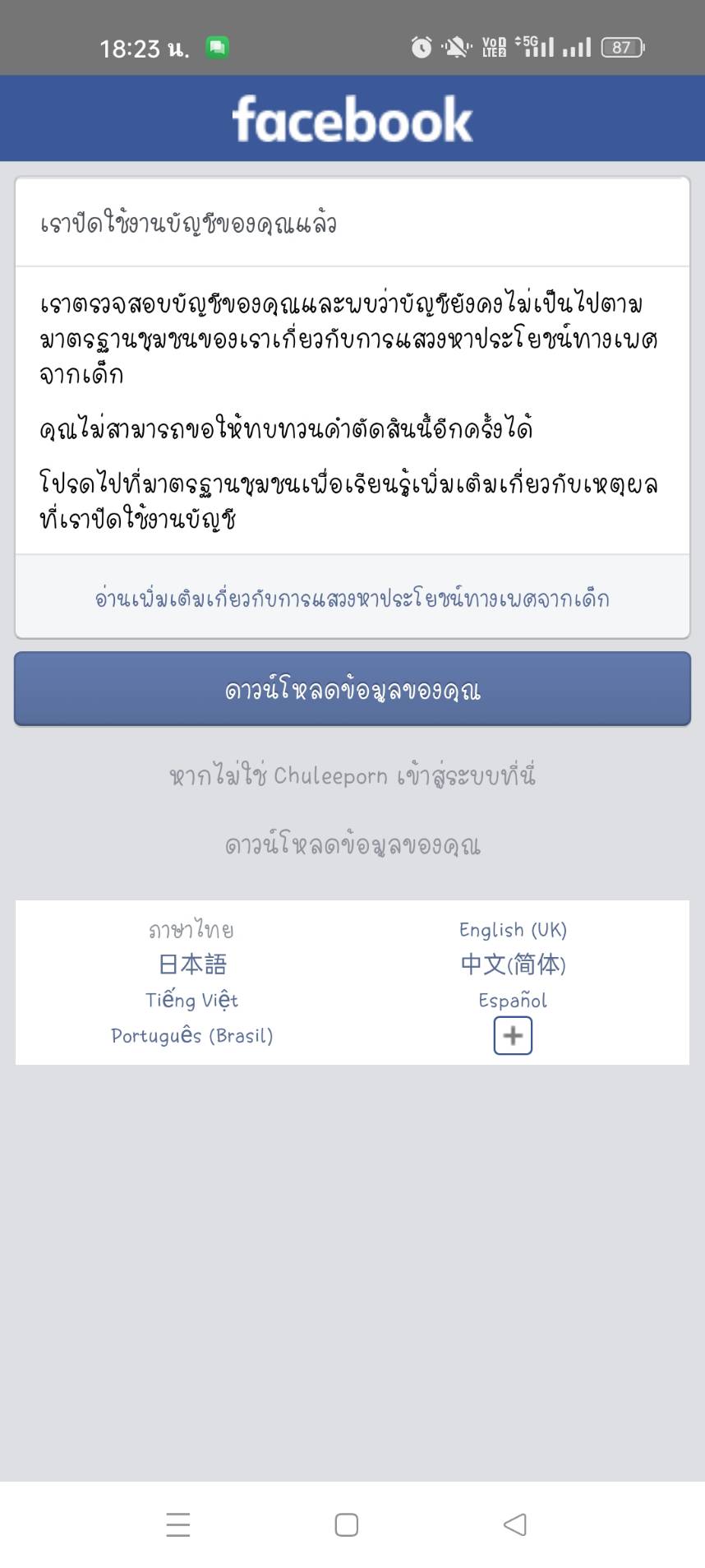 เฟสบุ๊ค โดนปิดต้องทำอย่างไรค่ะ ยื่นอุทรณ์แล้วไม่ผ่านค่ะ