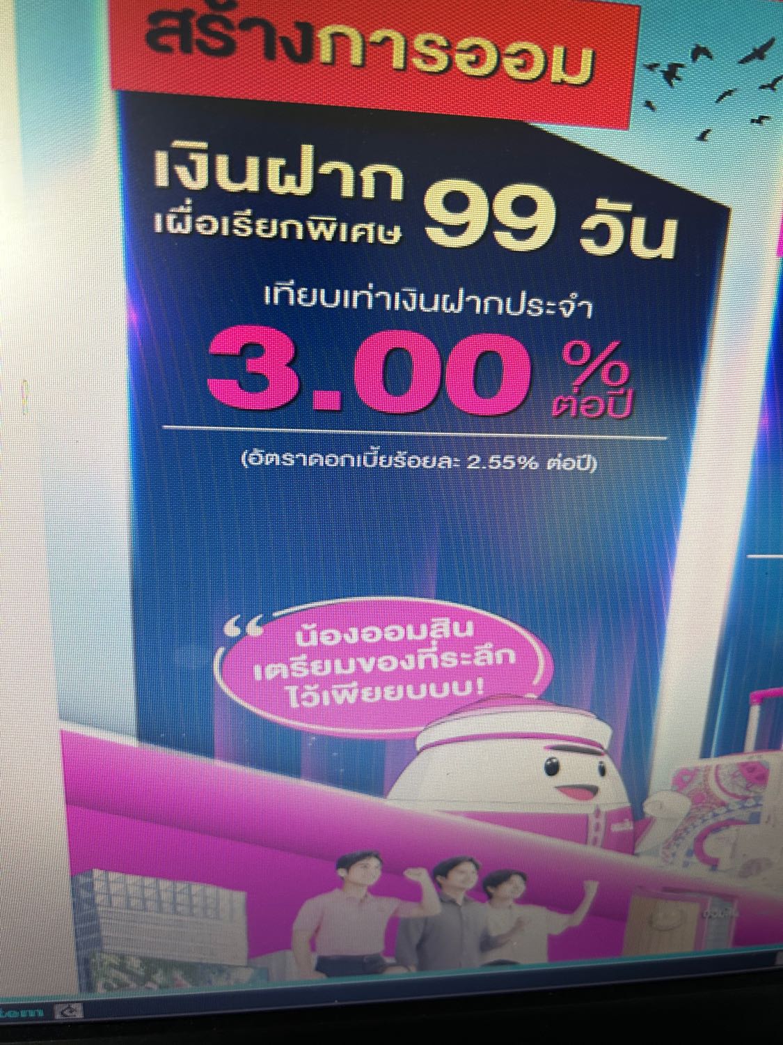 ฝาก99วัน เทียบเงินฝากประจำ3%(อัตาดอกเบี้ยร้อยละ2.55%ต่อปี)