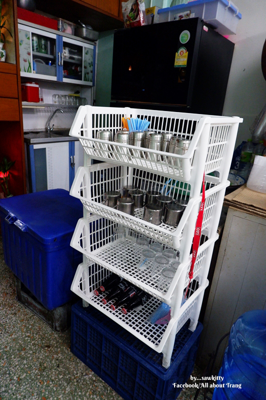 เรามาดูกันค่ะ ตู้หน้าร้านเป็นตู้ไม้เก่าน่าจะมาพร้อมร้าน ทางพี่ ๆ เอาไปเคลือบมาด้วย