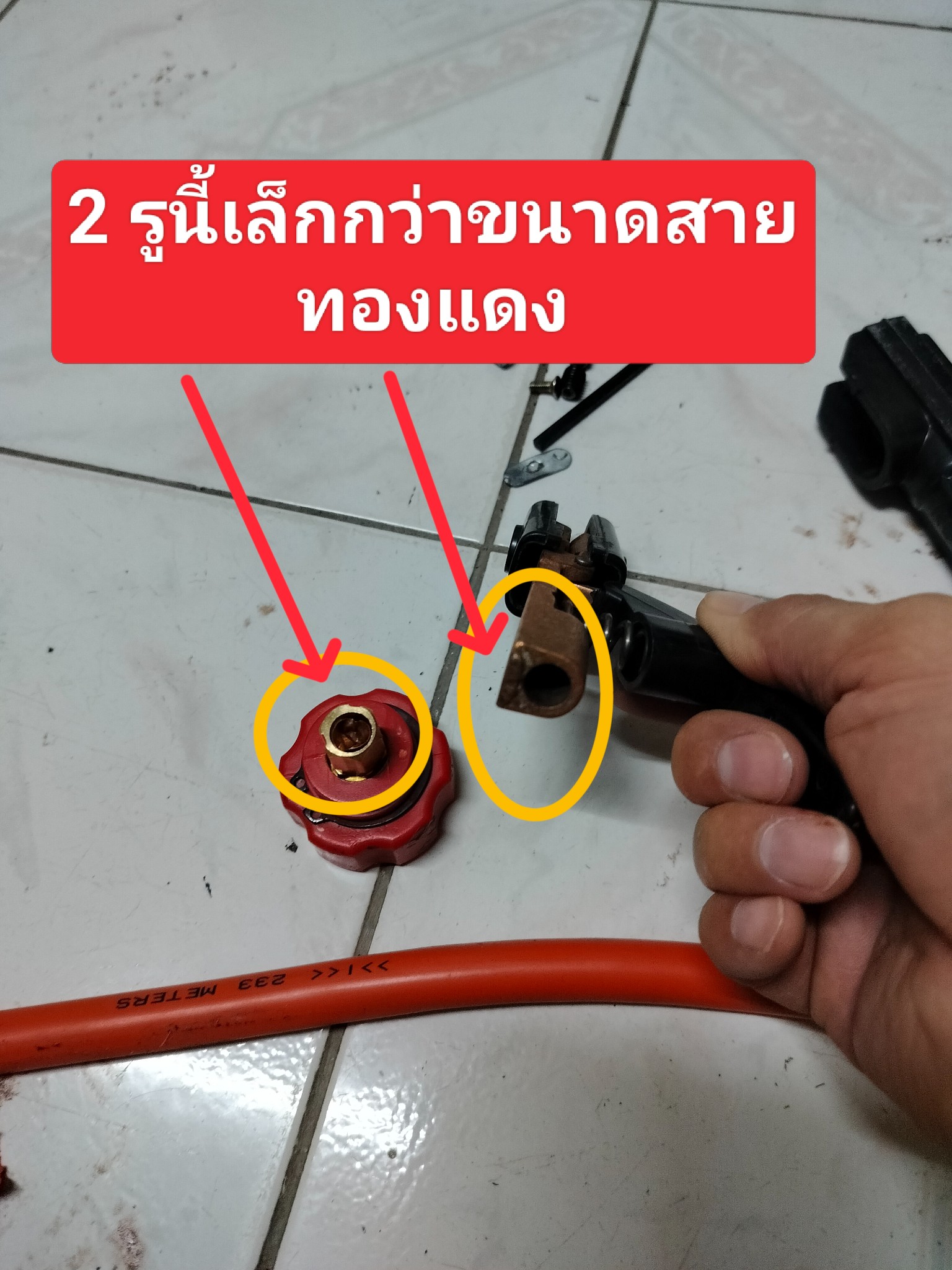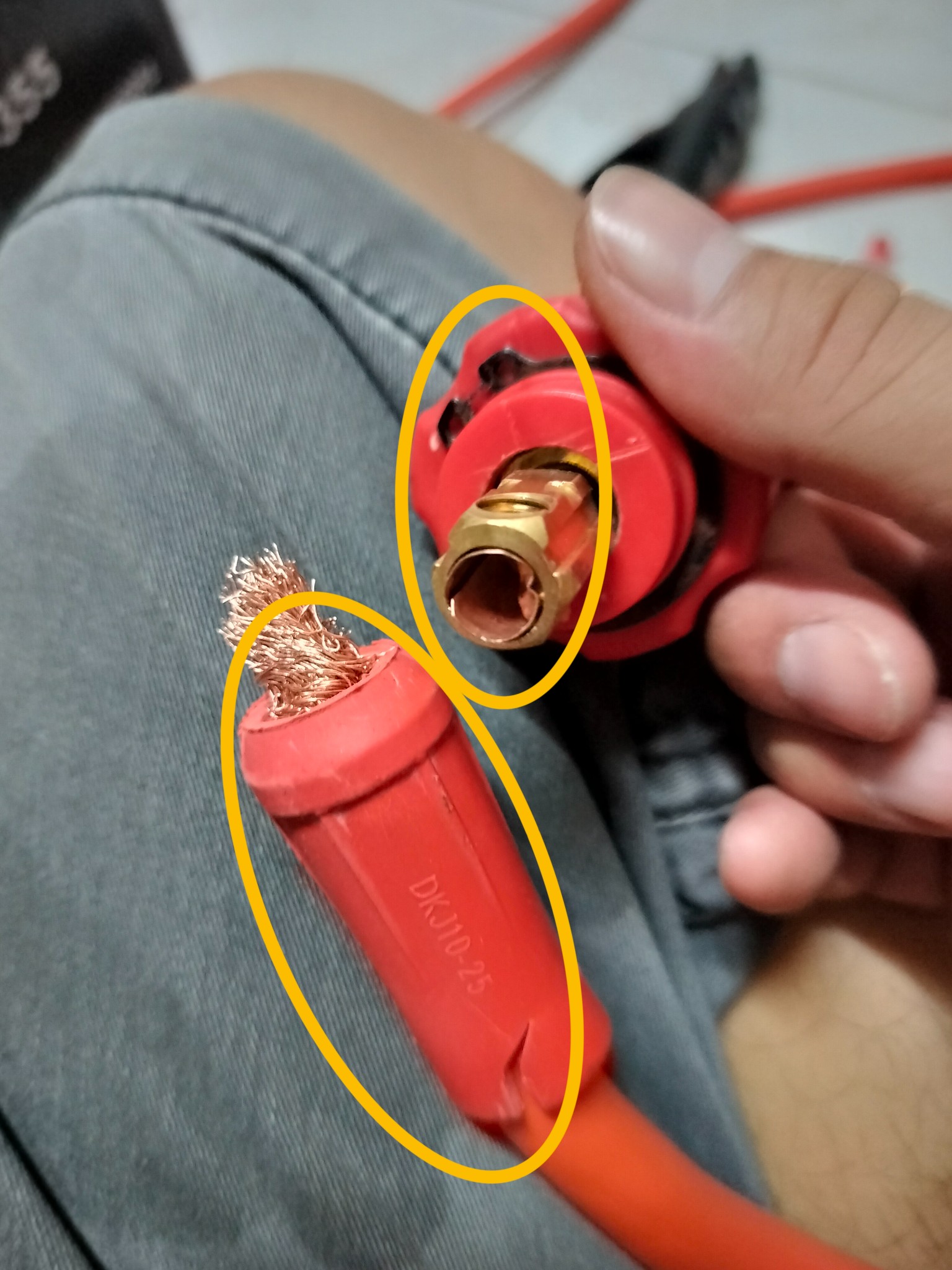 สั่งสายเชื่อม mma. ขนาด 35 sq.mm มาใหม่ แต่ใส่กับหัวเชื่อม และ ขั้วใส่ที่ตู้ ไม่ได้ครับ สายของเดิม 25 sq.mm (เหมือนขนาดสายไฟจะใหญ่กว่ารูขั้วใส่ )