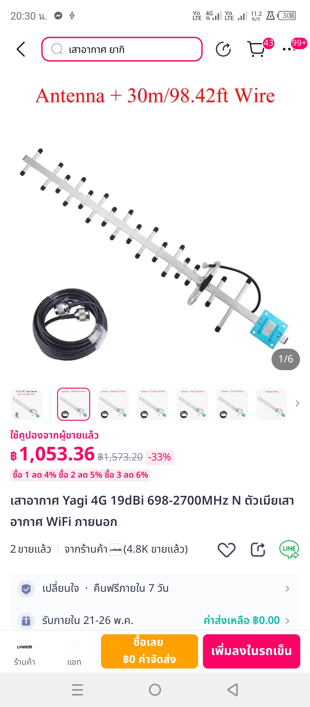 ถ้าผมจะซื้อ ไวไฟจะเล่นได้ไหม มี เราเตอร์ 4G ที่ใส่ซิมได้ + มีช่องต่อเสา (2 รู SMA) เสา Yagi 4G (14–18 dBi) รองรับคลื่น 900/1800/2100 MHz ซิมเน็ต AIS แบบไม่อั้น คือข้างล่างที่บ้านผม เกือบขึ้น1