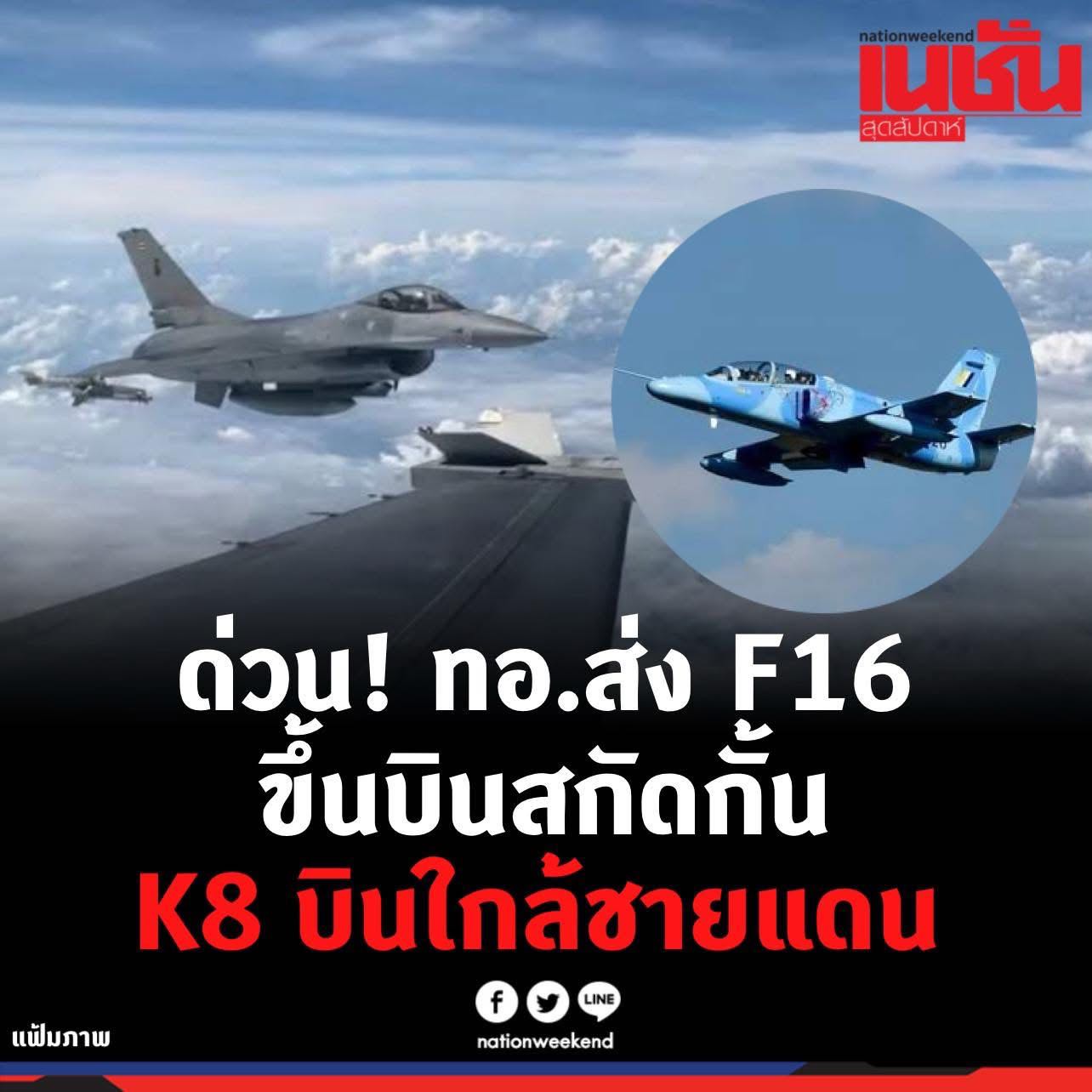 ทอ. แจ้ง “ด่วน” ส่ง🇹🇭F-16 2 เครื่อง สกัดเครื่องบินโจมตี K8 พม่า🇲🇲