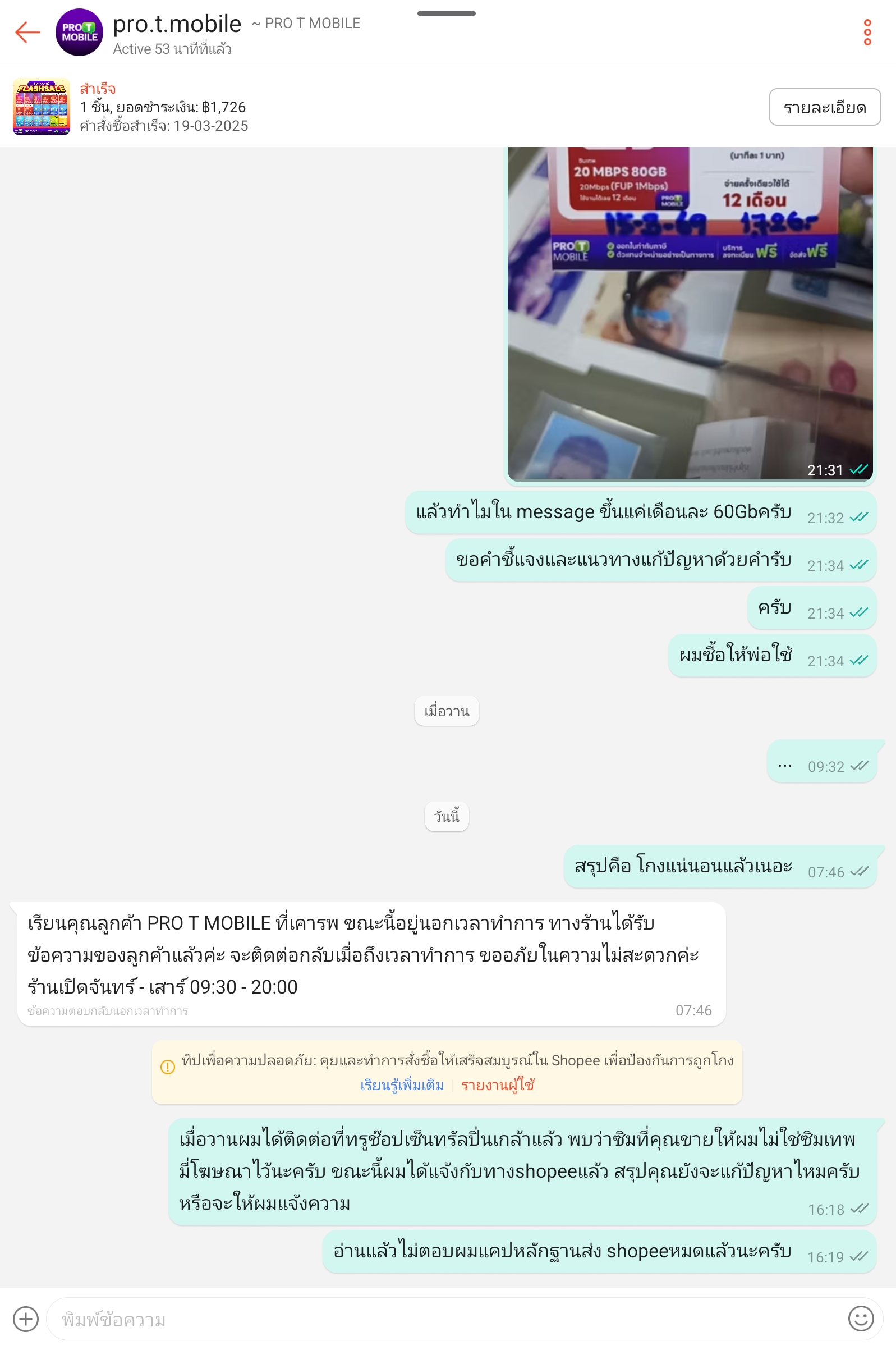 4. พนง.shopee แนะนำให้ผมทักร้านค้าไปอีกไปต่อรองเอาเอง ถ้ายังไม่ตอบหรือปฏิเสธความรับผิดชอบก็แจ้งเข้าไปอีกที