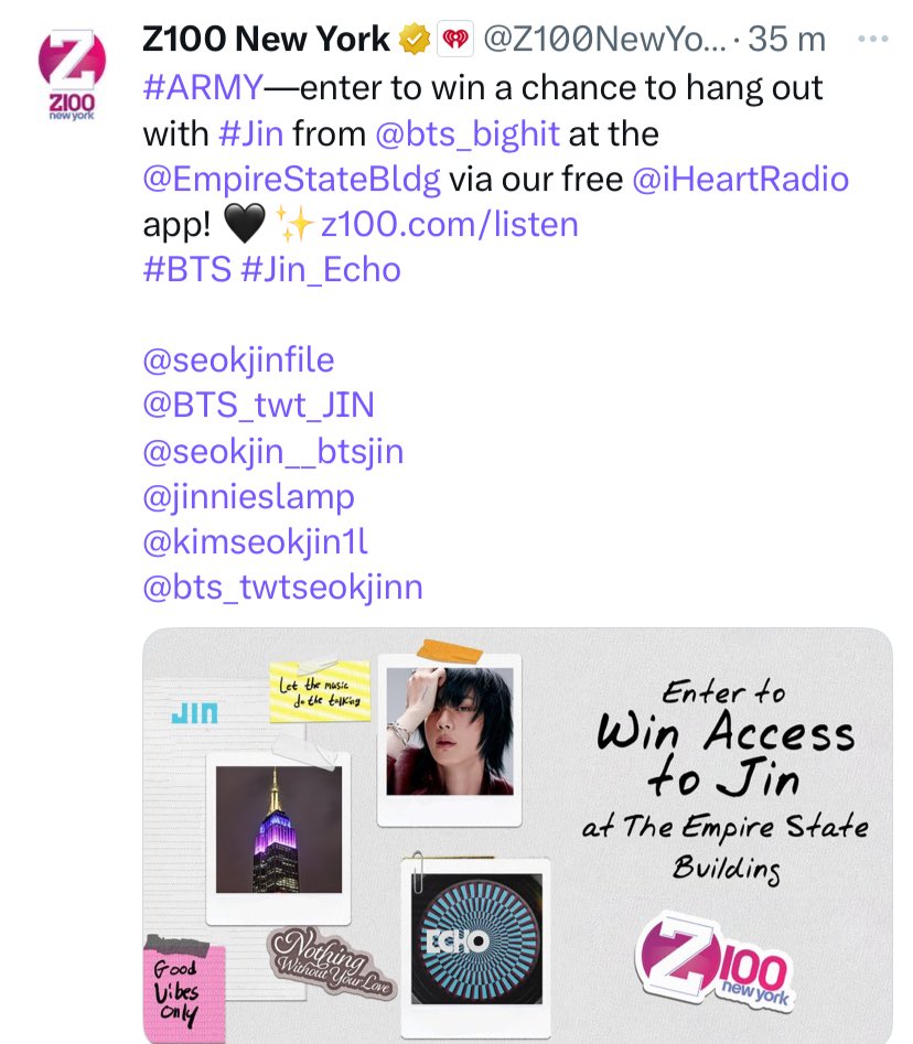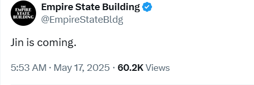 มีรายงานว่า จิน BTS จะไปเยือนตึก Empire State ที่ New York