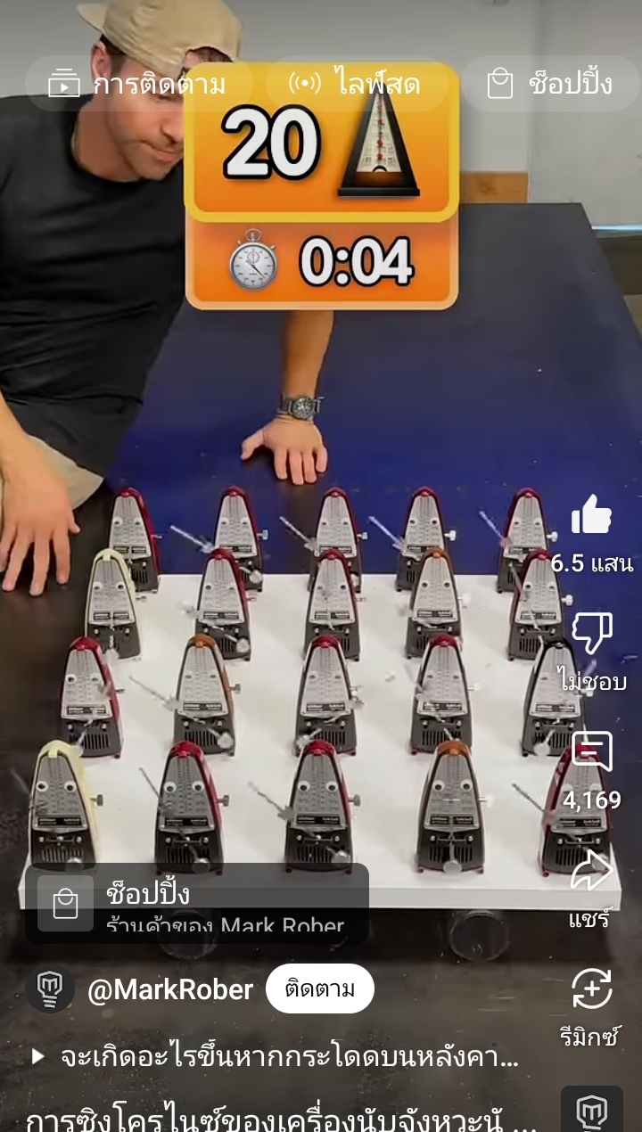 ใช่ครับ ผมเคยอ่านและเห็นปรากฏการณ์การซิงโครไนซ์ของเครื่องให้จังหวะมาก่อนครับ มันเป็นตัวอย่างที่คลาสสิกและน่าสนใจมากในเรื่องของระบบที่ไม่เป็นเชิงเส้น (nonlinear systems) และพลศาสตร์ (dynamics) ครับ