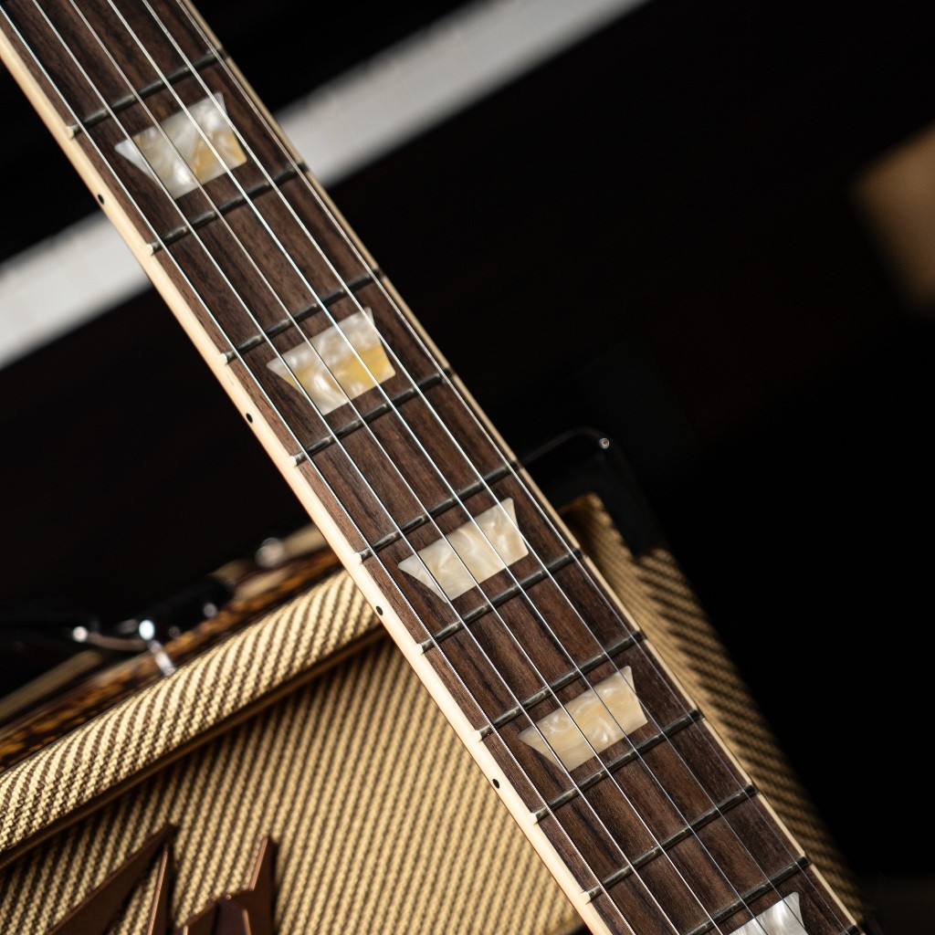 - อินเลย์: อะคริลิกรูปสี่เหลี่ยมคางหมู (Acrylic Trapezoids) สัญลักษณ์ของ Les Paul