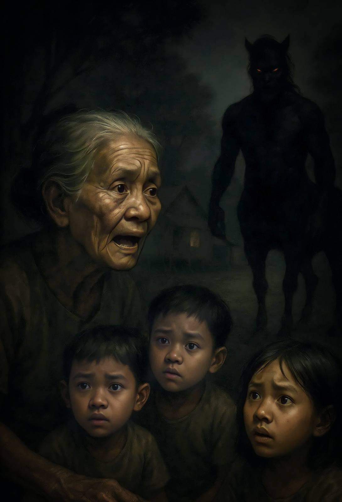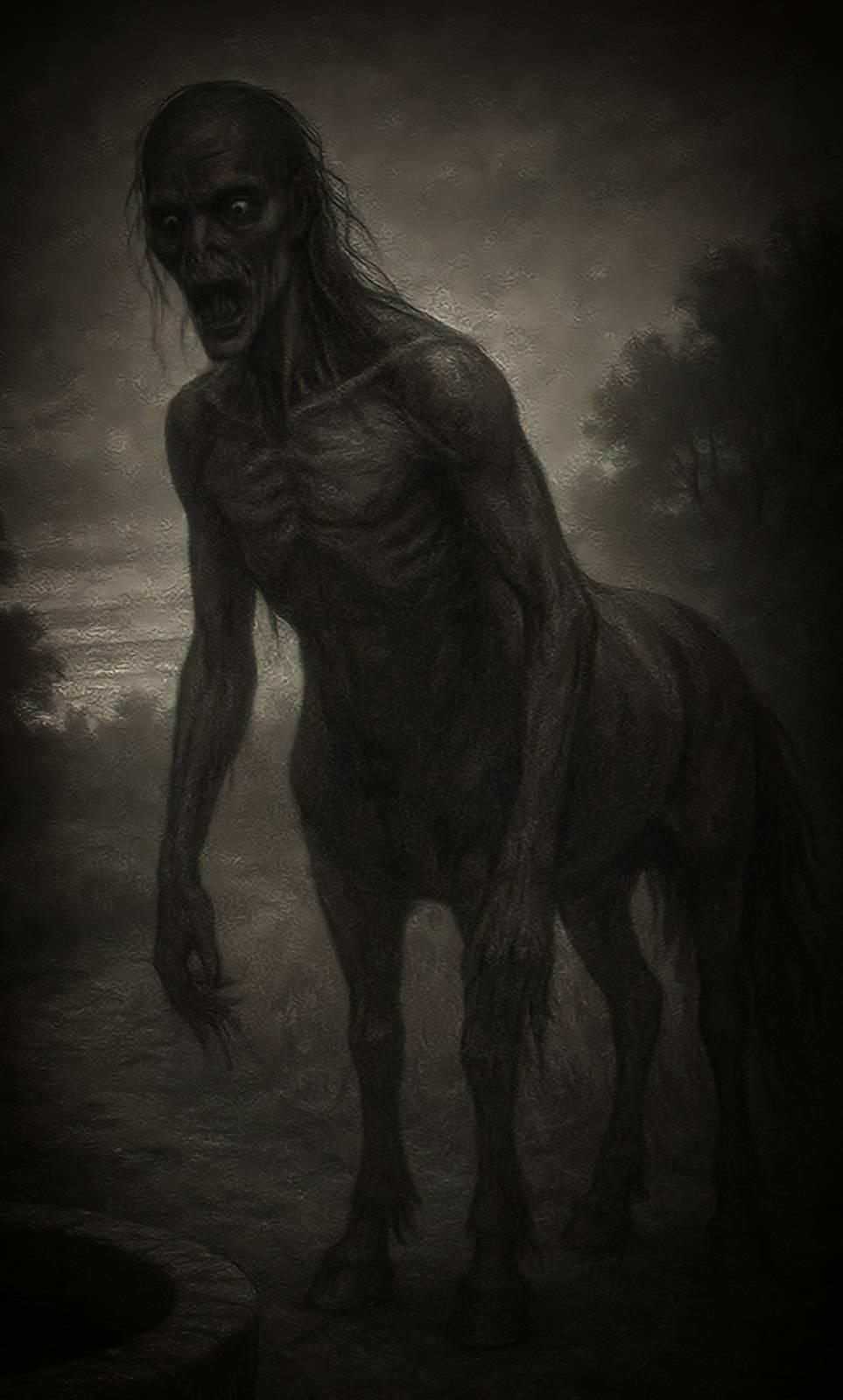 ยายน้อยรู้สึกโล่งใจ... แต่ในขณะที่มองออกไปทางบ่อน้ำ สายตาของยายน้อยก็ไปสะดุดเข้ากับเงาร่างสูงใหญ่ที่ยืนแฝงตัวอยู่ข้างต้นไม้ ตาสีแดงเรืองแสง ผิวดำสนิท ท่อนล่างเป็นขาของม้า... กำลังจ้องมาที่เธออย่างเงียบงัน