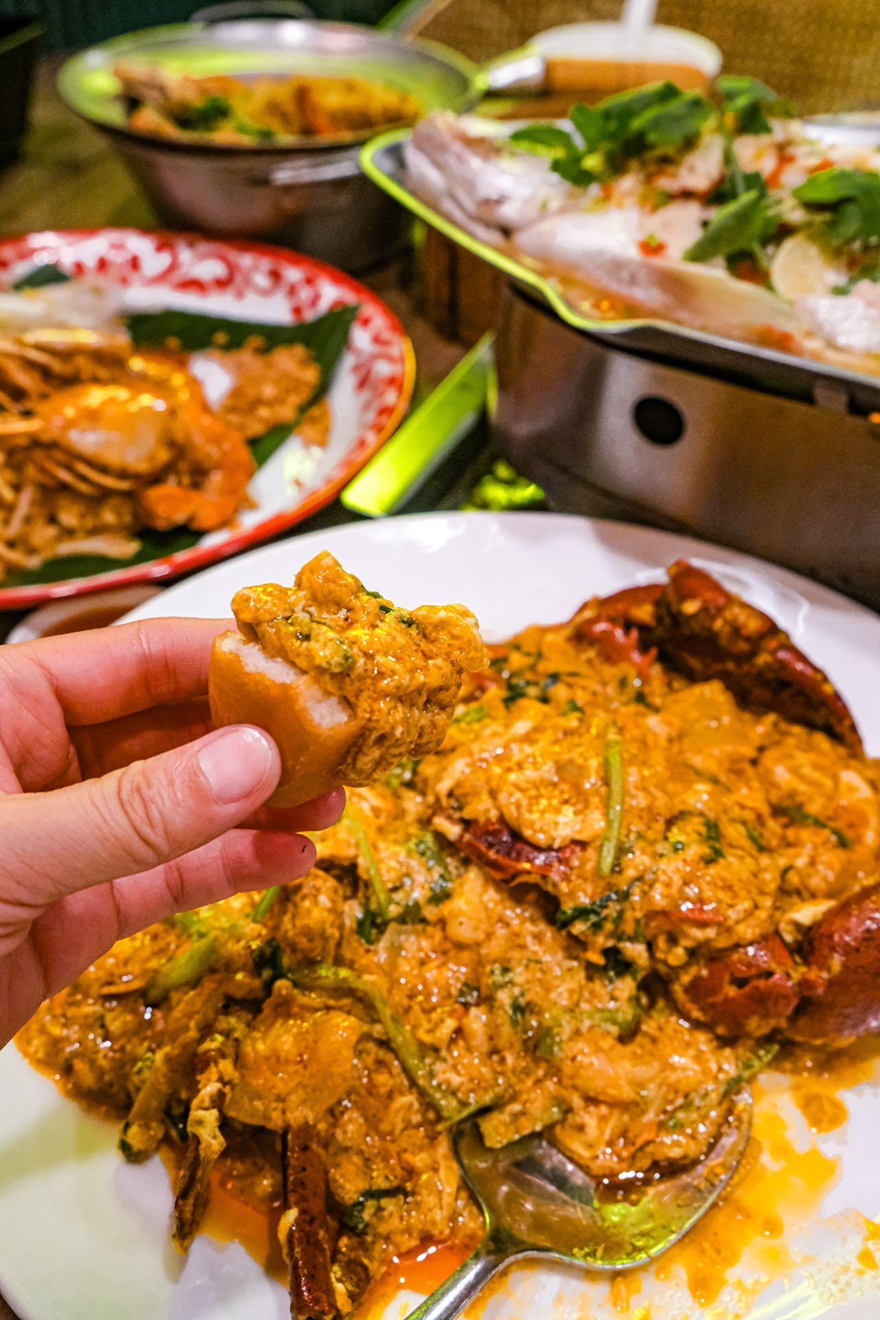 ปูทะเลผัดผงกะหรี่ + หมั่นโถวทอด