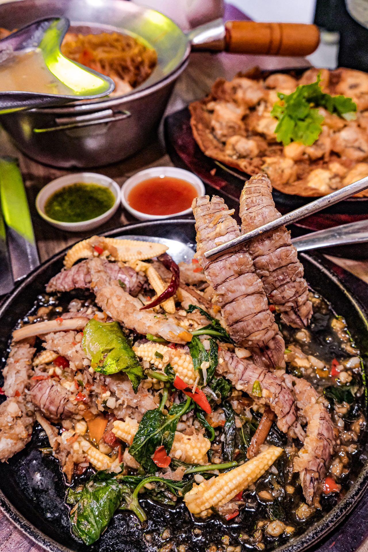> เผ็ดร้อน หอมพริกไทยอ่อน ใบกะเพรา พริกสด กั้งตัวใหญ่ ผัดมากำลังพอดี เนื้อแน่น เสิร์ฟบนกระทะร้อน หอมกระทะสุด ๆ
