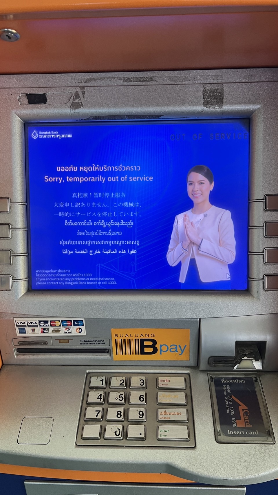 ตู้กดเงินของธนาคารกรุงเทพ ไม่สามารถใช้บริการได้โดยไม่ทราบสาเหตุ