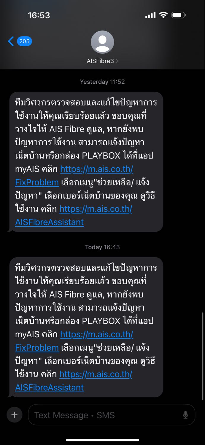 18 พค 68 แจ้งปัญหาเนตAis fiber เปิดเวปดูหนังออนไลน์ไม่ได้ โทรหา callcenter แจ้งว่าเกิดจากมีคำสั่งศาลให้ปิดกั้นเวปพวกนิแต่เครือข่ายอื่นสามารถดูได้ปกติ เพิ่งจดทะเบียนใช้งานได้ไม่กี่เดือนก็เกิดปัญหาแบบนี้ ถ้ารู้ว่าจะถูกปิดกั้นเวปไซด์ จะไม่เปลี่ยนมาใช้ค่ายนี้เลย แจ้งปัญหาไปเจ้าหน้าที่โทรมาก็บอกแค่ให้รอช่างตรวจสอบ ปัจจุบันยังไม่มีช่างติดต่อกลับแต่ส่งข้อความแจ้งว่าปิดงานไปแล้ว ต้องการคำชี้แจงว่าจะสามารถเยียวยาลูกค้าได้อย่างไรบ้างหากไม่มีแนวทางแก้ไขปัญหานี้ ต้องการยกเลิกบริการโดยไม่มีค่าปรับเนื่องจากปัญหาที่เกิดขึ้นไม่ได้แจ้งให้ลูกค้ารับทราบก่อน และหากทราบว่าใช้งานไม่ได้ก็จะไม่ย้ายค่ายมาใช้ AIS อยากให้ผู้เกี่ยวข้องช่วยรับความคิดเห็นและนำไปแก้ไขให้ตรงจุดด้วยค่ะ