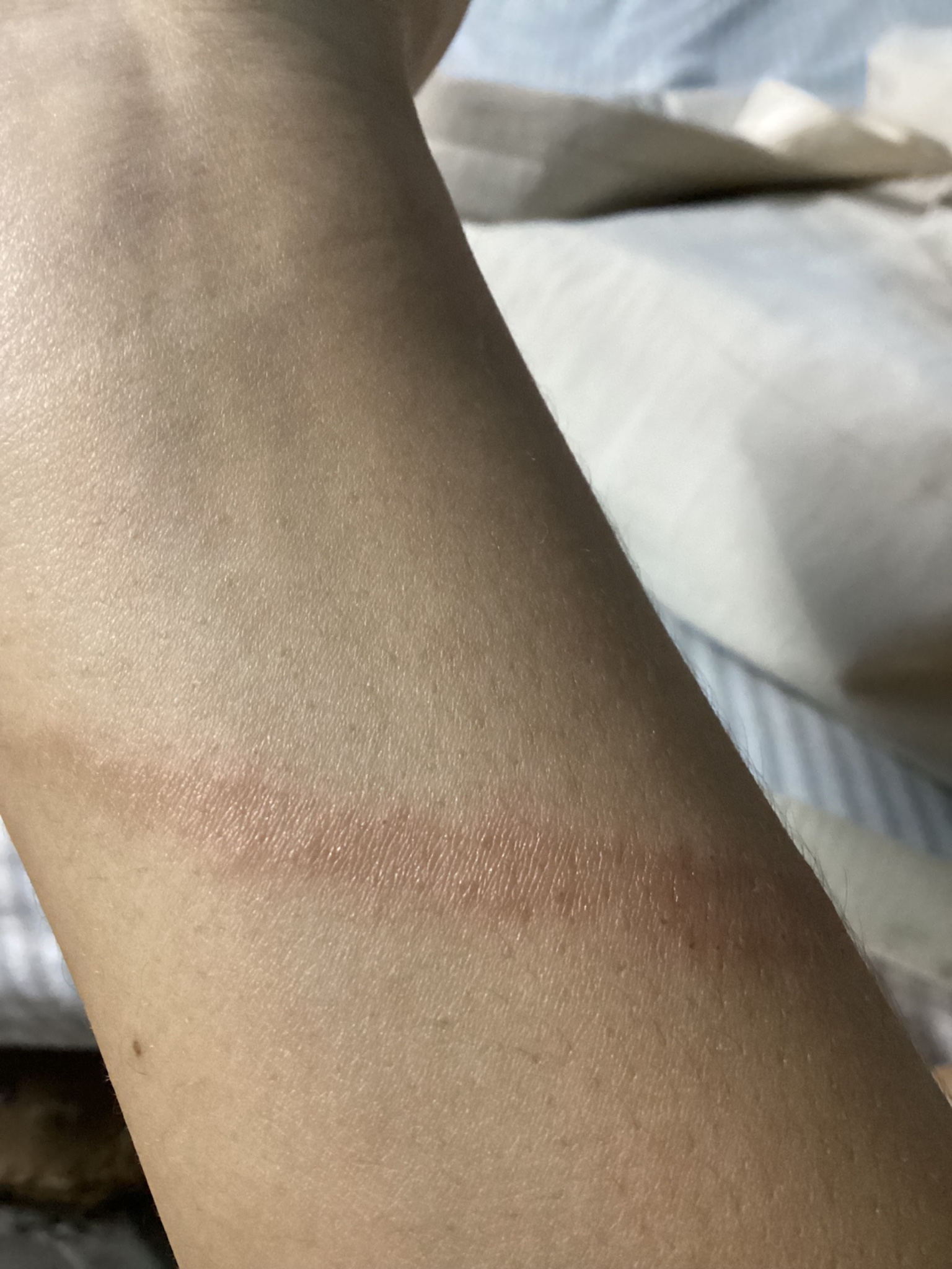 ทุกคนช่วยด้วยค่ะ เรางงมากไม่รู้ว่ารอยแบบนี้มาได้ยังไง เพิ่งสังเกตเห็นเมื่อตอนบ่ายวันที่ 19/08/2568 ลักษณะมีความนูน สีส้ม ตรงกลางสีน้ำตาล เบื้องต้นไม่ใช่เบตาดีนแน่นอน เพราะเราไม่ได้ทายาตรงนั้น เครียดมา