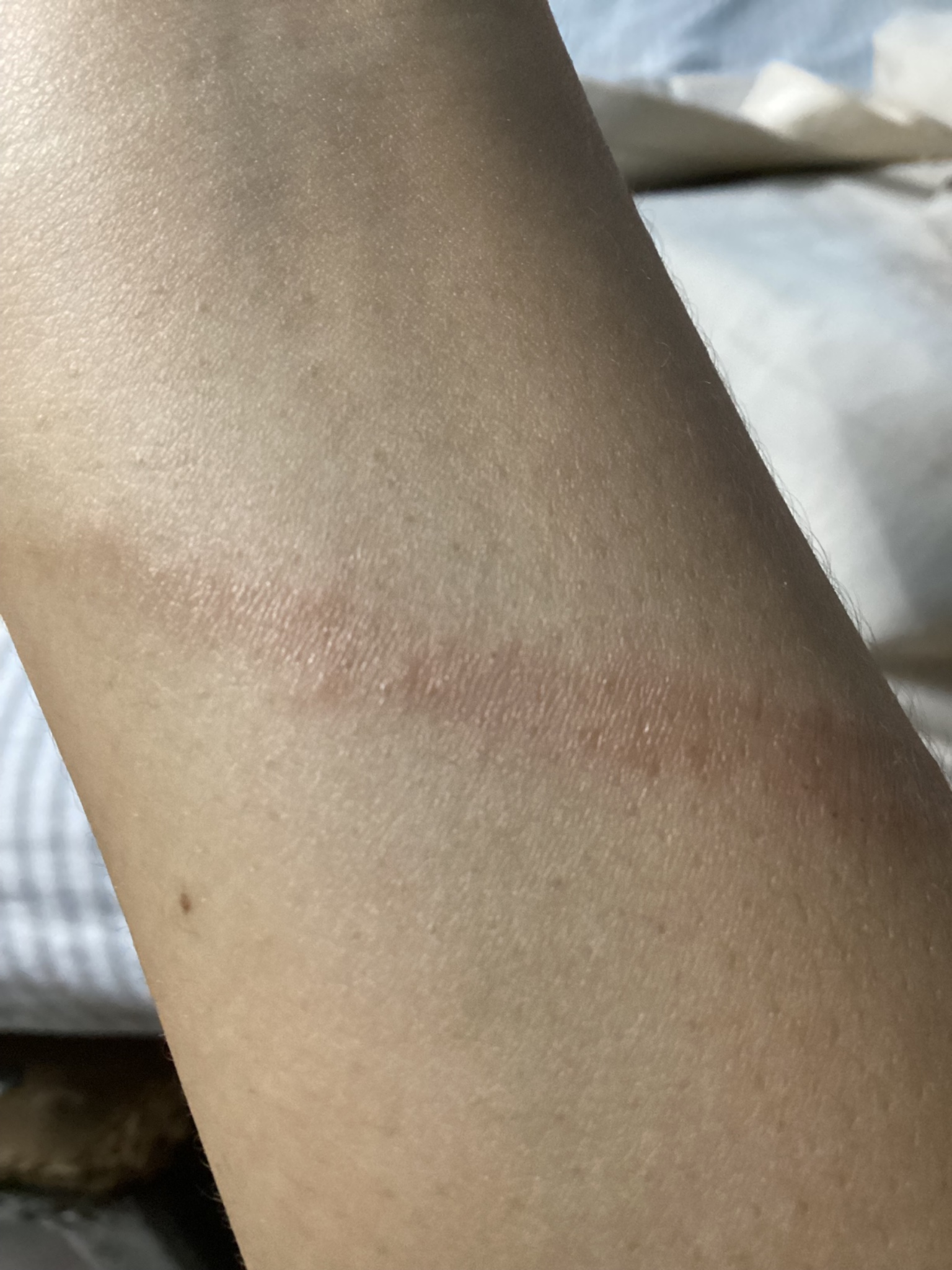 คือมันเป็นตุ่มๆเม็ดเล็กๆ แล้วก็คันๆค่ะ แต่ว่าอีกข้างนึงขึ้นน้อยกว่า แล้วบริเวณที่ขึ้นก็มีแค่บริเวณนี้(หน้าแขน) ช่วงนี้ก็ใช้ทุกอย่างปกติค่ะ แต่ไมาชัวร์ว่าแพ้หรือว่าเป็นอะไร เพราะส่วนของขาไม่มีขึ้นค่ะ