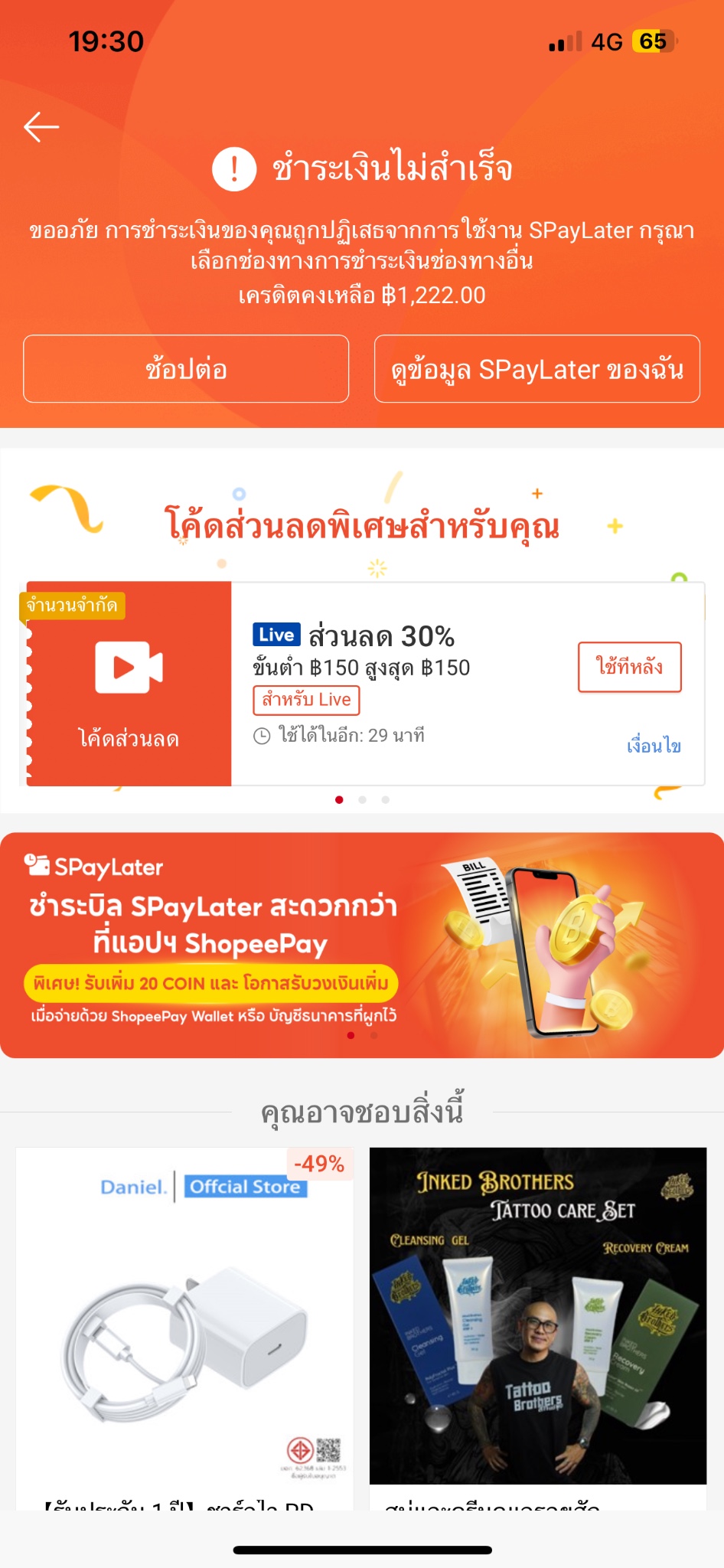 SPaylater ถูกปฏิเสธการชำระเงิน