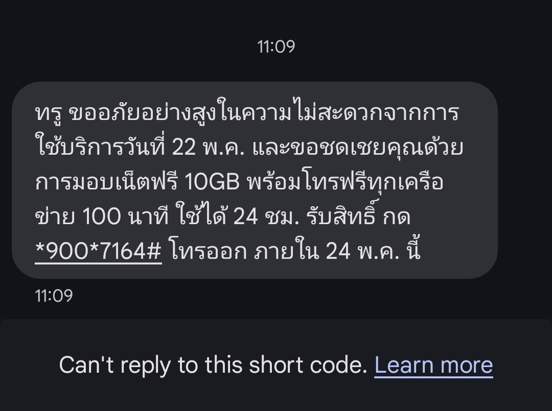เมื่อวานไฟที่บ้านตก internet ใช้ไม่ได้ เราโทรไป 16.20 น. บอกให้เรารอ 24 Hr.เรายอมโดนที่บ้านด่าเพราะเป็นคนขอเค้าเปลี่ยนมาใช้ทรู เพราะเราเชื่อใจคุณแล้วบอกจะส่งช่า