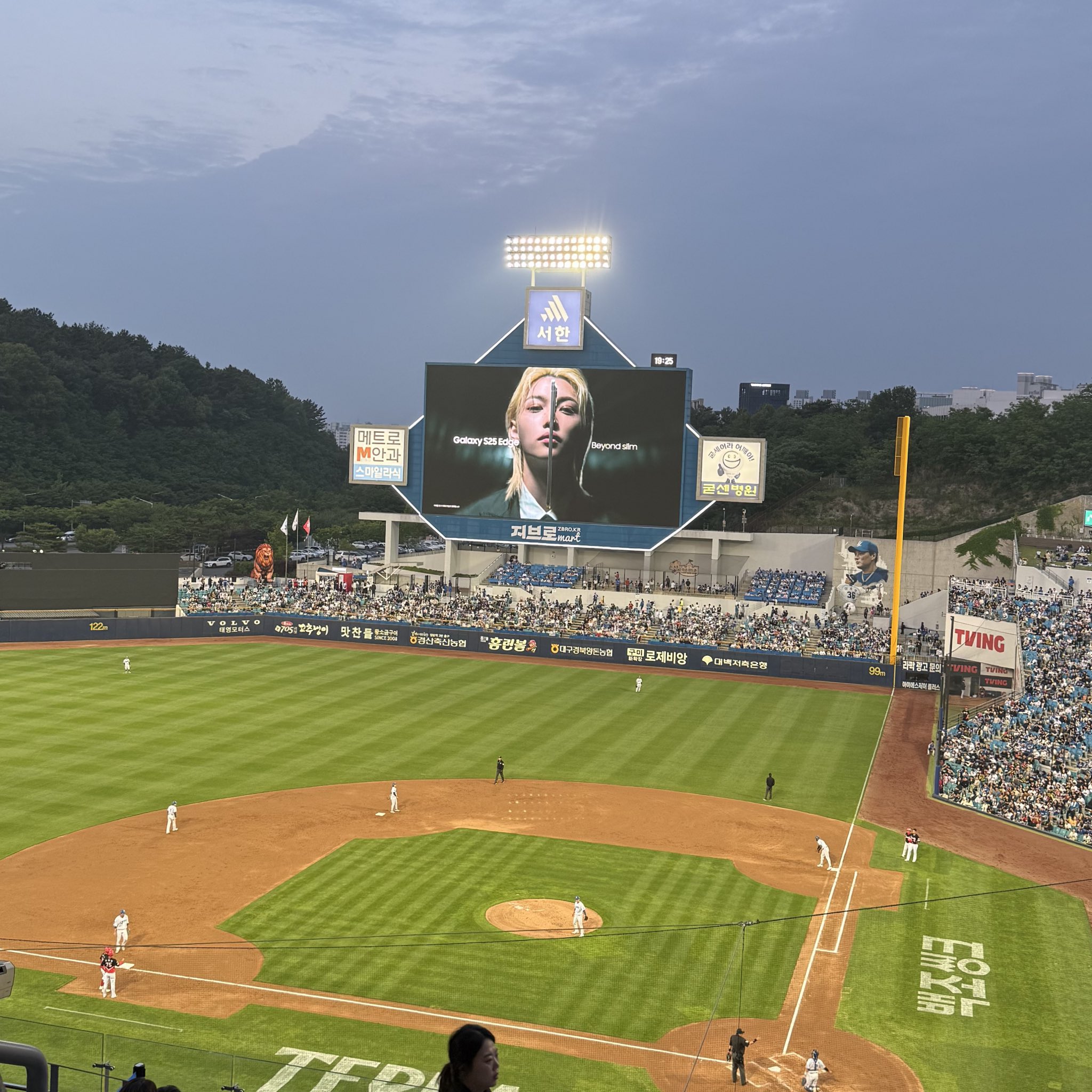 ซัมซุงขึ้นป้ายขึ้นจอเยอะมากค่ะ กระจายทุกพื้นที่สำคัญเลย ไม่ว่าจะเป็นสนามเบสบอล สถานีรถใต้ดิน ช้อปมือถือ แม้กระทั่งบนจอเครื่องออกกำลังกายในยิม คนเกาหลีจะเริ่มรู้จักเด็กหลงมากขึ้นแล้ว ^^