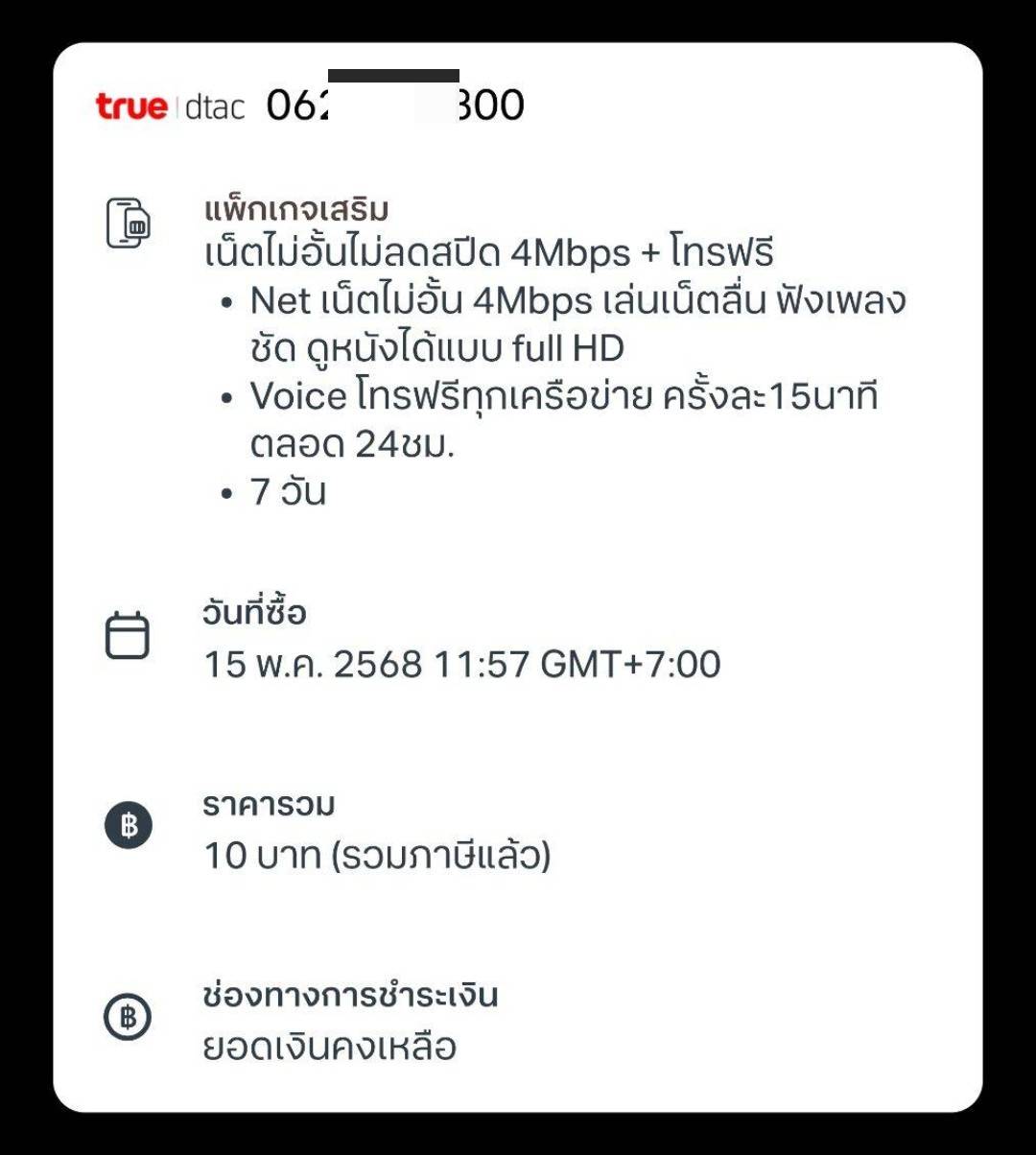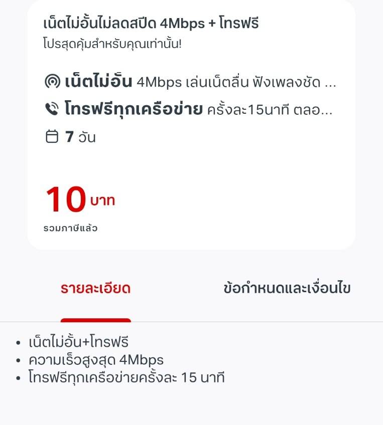 ก่อนหน้านี้ก็เจอโปร 4Mbps 7 วัน 10 บาท ตามรูป