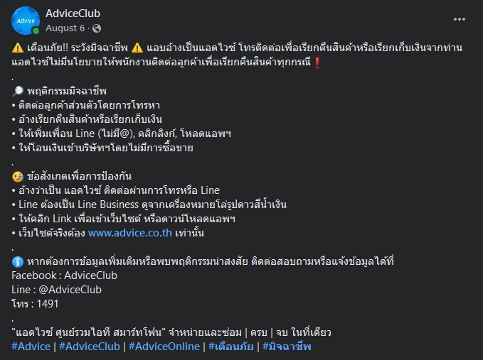 Advice ยังไม่เลิกโดนแอบอ้างอีกเหรอคะเนี่ย นานแล้วนะคะ วนกลับมาโดนแอบอ้างอีกระลอกแล้ว