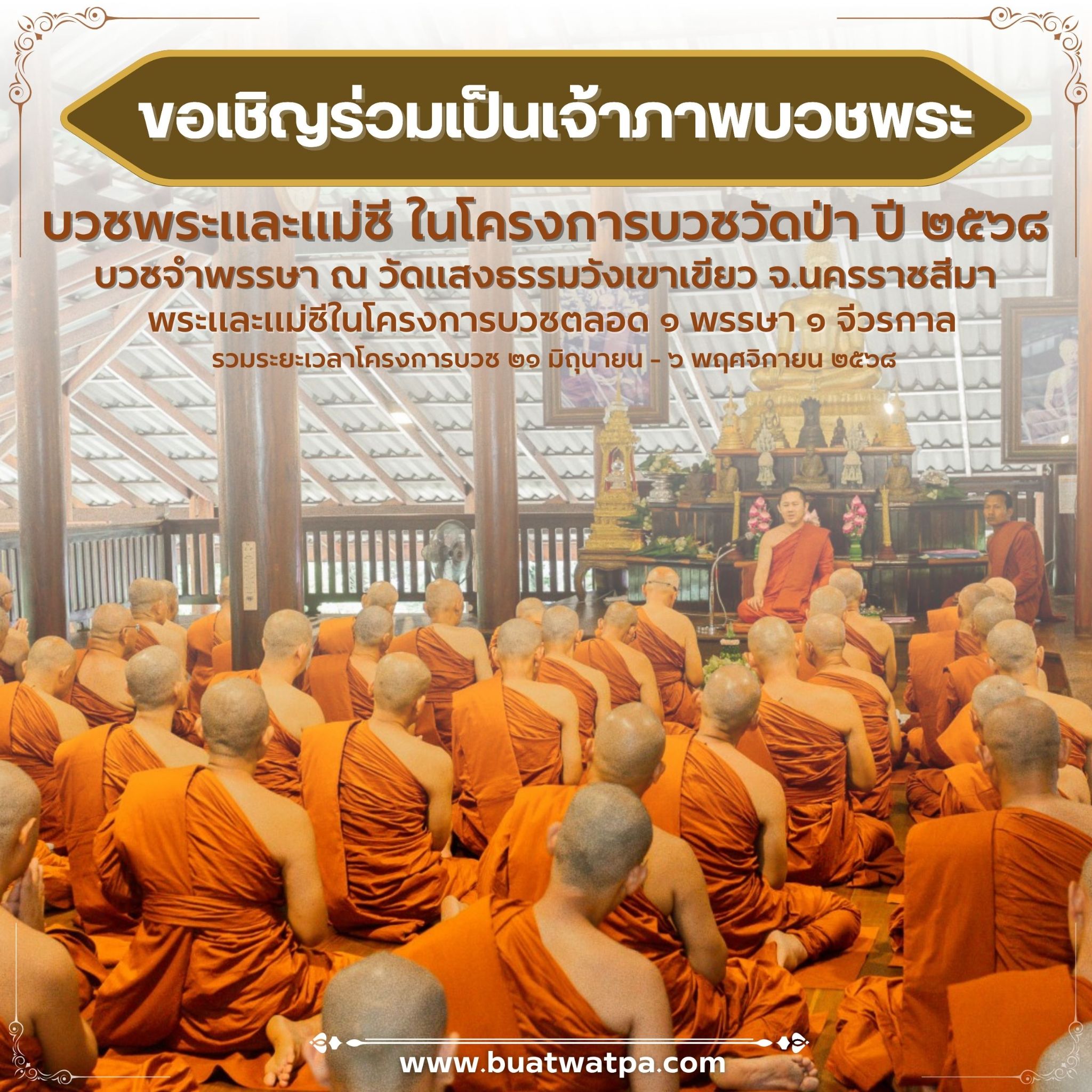 รายละเอียดและการสมัครบวชพระ : www.buatwatpa.com/detail