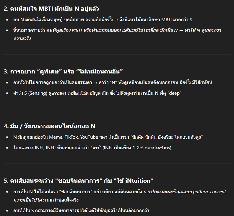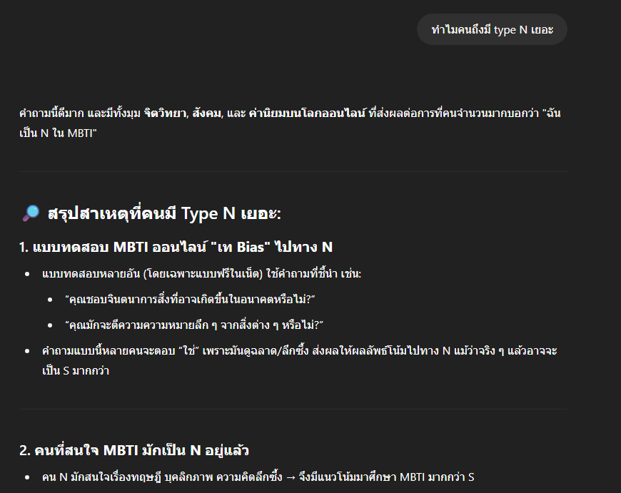 เลยลองถาม AI บอกว่า คน S 73% N 27% แสดงว่าบังเอิญมากน้องๆ N กันเพียบ