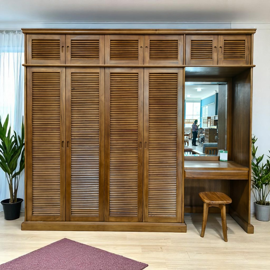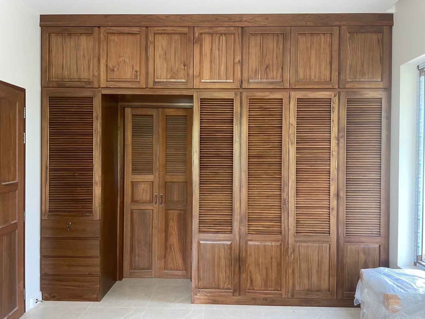 ที่เลือกเพราะเค้าใช้ไม้สักแท้ งานค่อนข้างละเอียดดี แล้วเราสามารถบอกขนาด บอกสเปกได้เลย เขาทำตามพื้นที่เป๊ะ ๆ