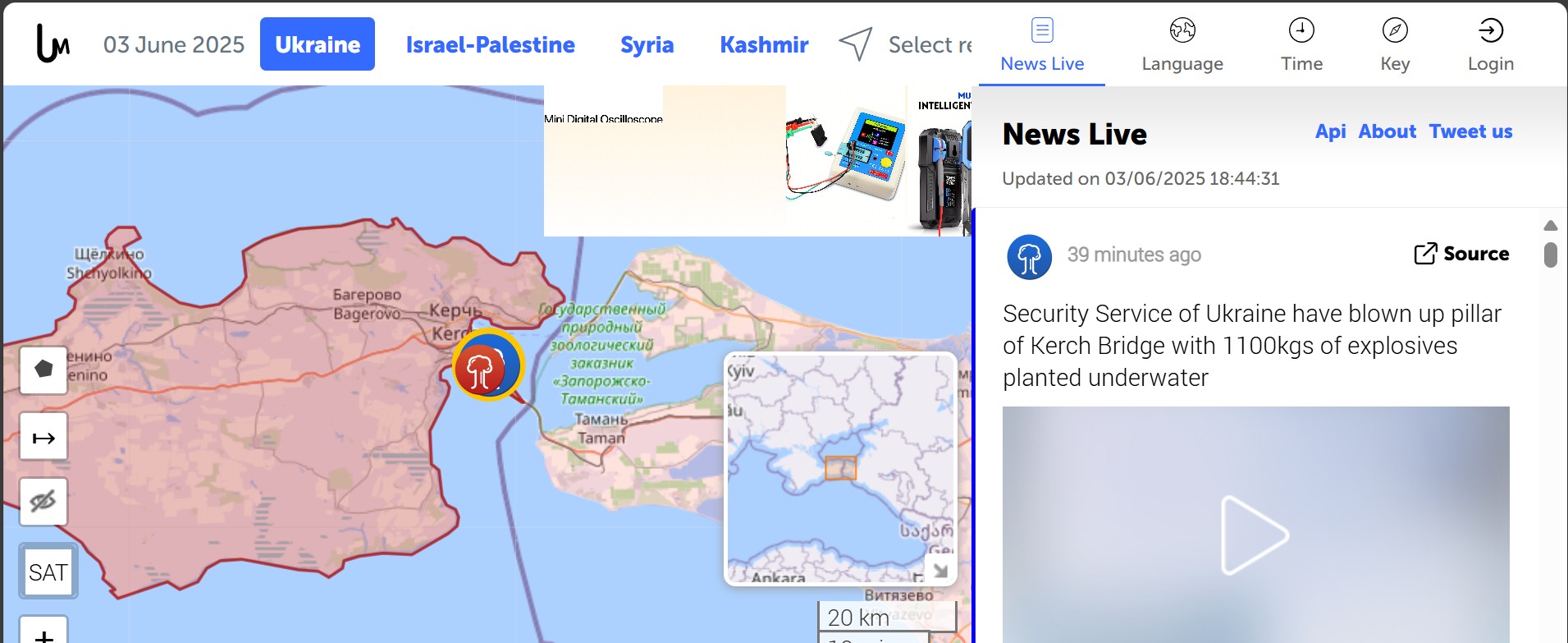 หน่วยงานความมั่นคงของยูเครนระเบิดเสาสะพานเคิร์ชจนเสียหาย พร้อมฝังวัตถุระเบิดใต้น้ำกว่า 1,100 กิโลกรัม 3/06/2025