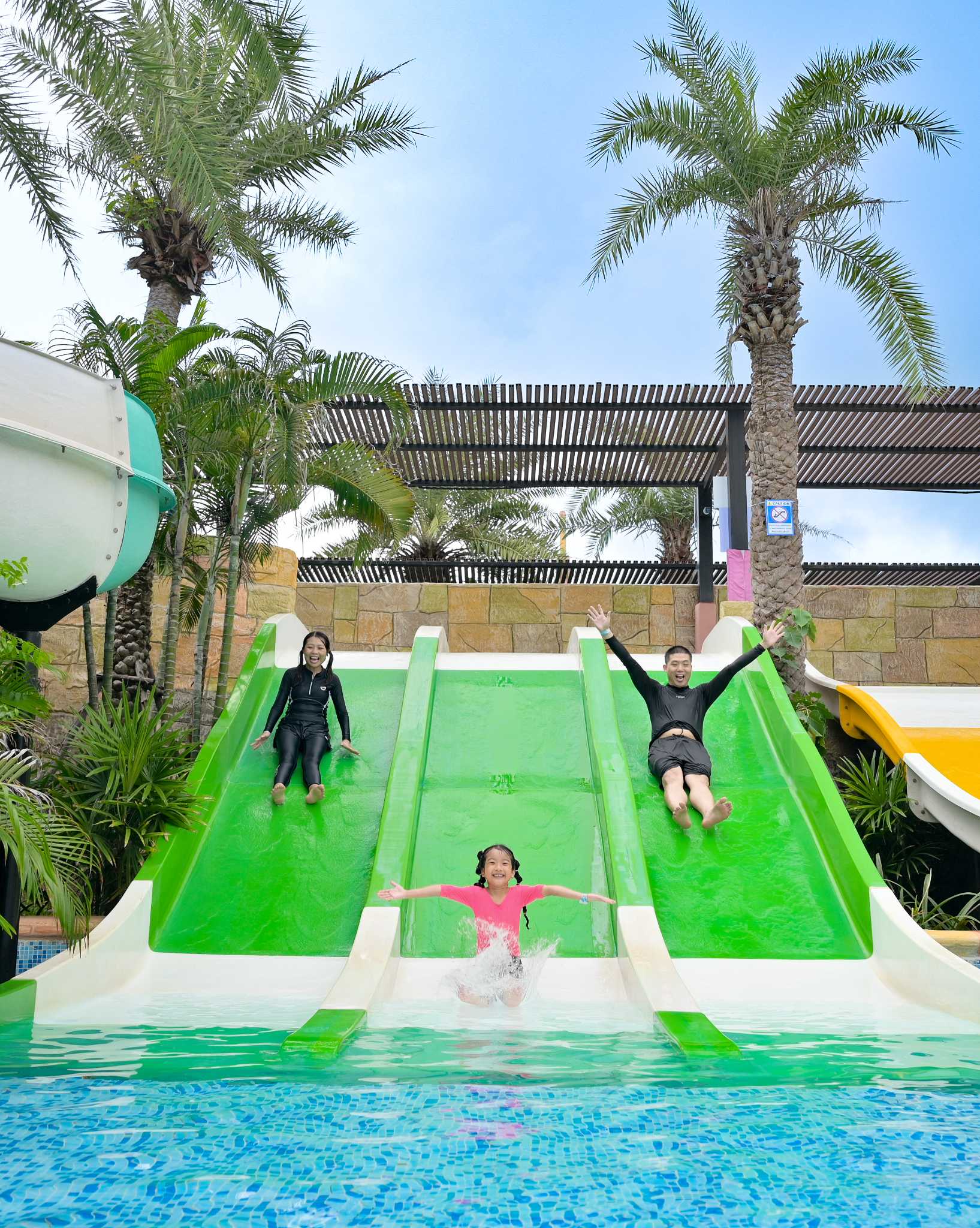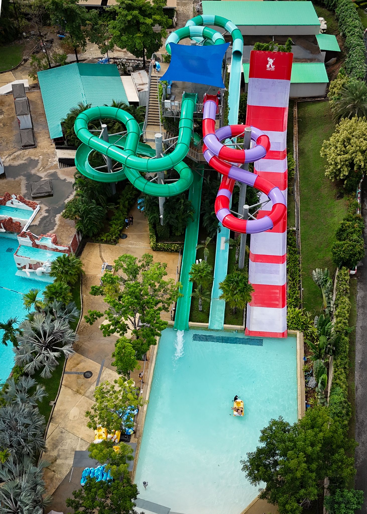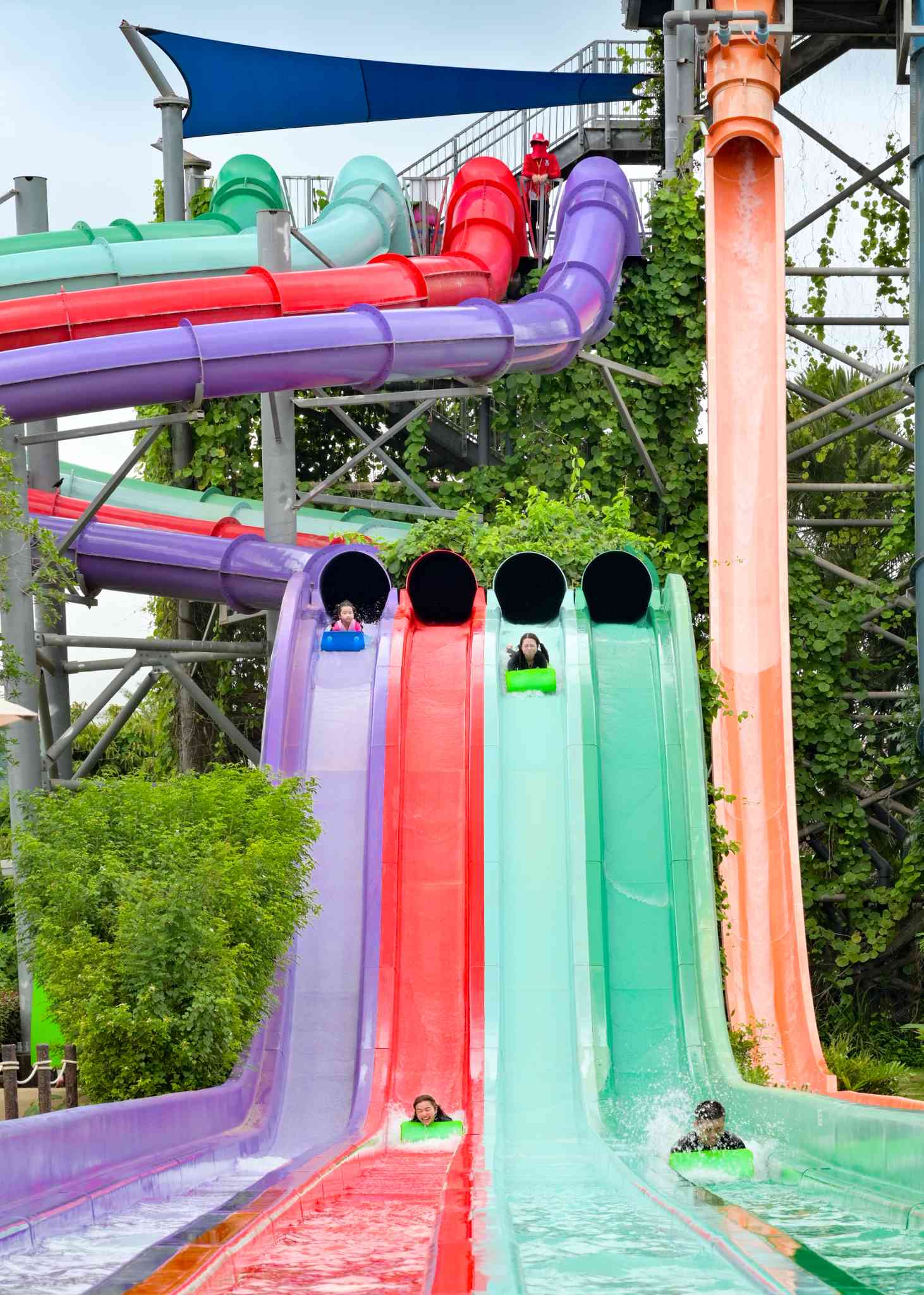 🛝 สไลเดอร์ที่นี่คือ ดีมากมีถึง 26 ชนิด ให้เลือกหลายระดับ ทั้งเบา กลาง หรือตื่นเต้นแบบสุดขีด เด็กๆ ที่มีความสูงตั้งแต่ 106 ซม. สามารถเล่นสไลด์ทุกอัน ยกเว้น FreeFall และ AquaLoop