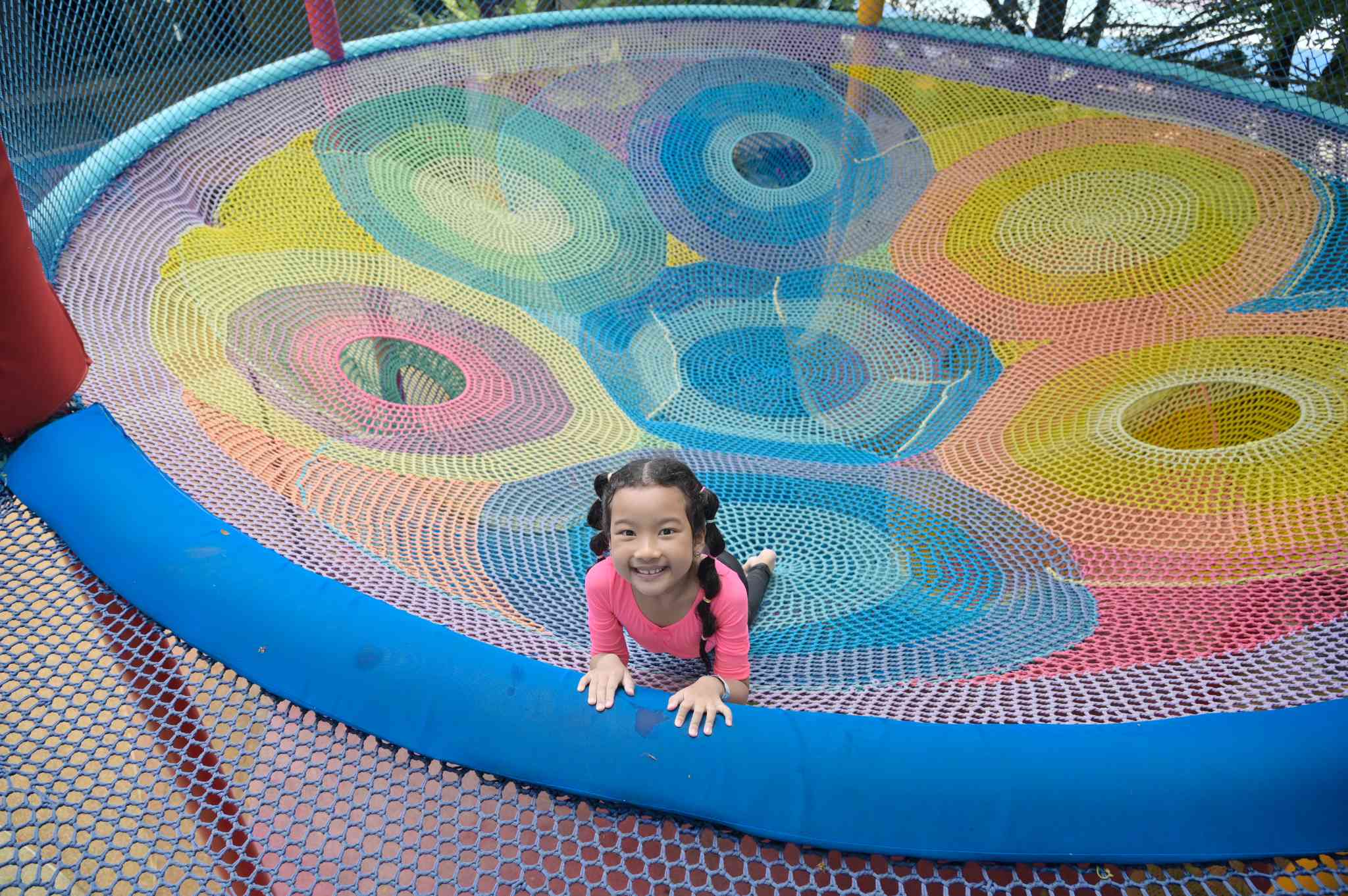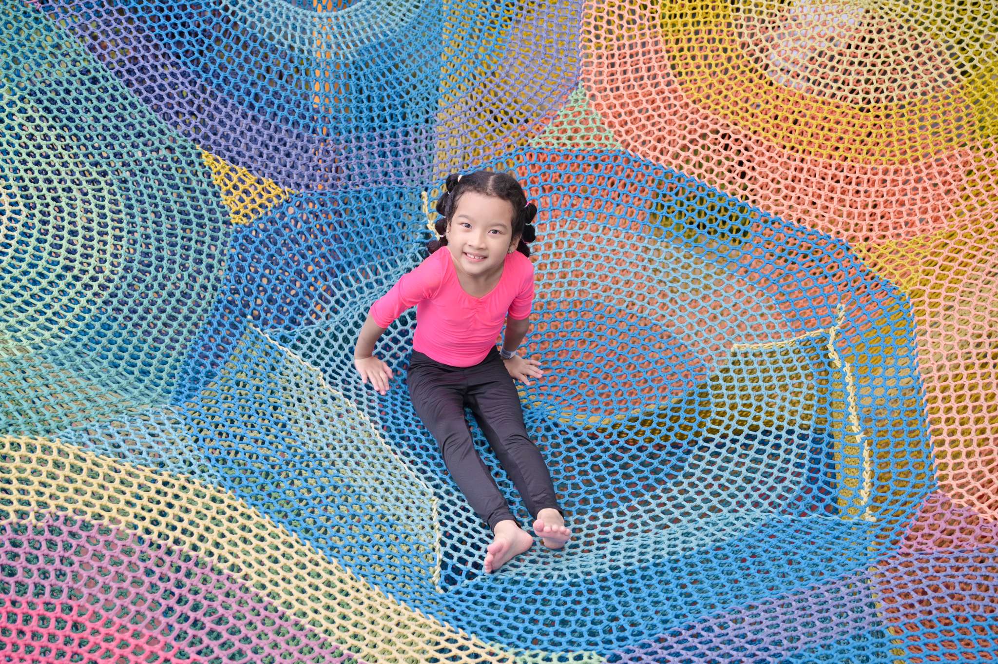 สะพานสายรุ้ง ที่ทำจากเชือกที่มีความยืดหยุ่น ให้เด็กๆ ได้ปีนป่าย