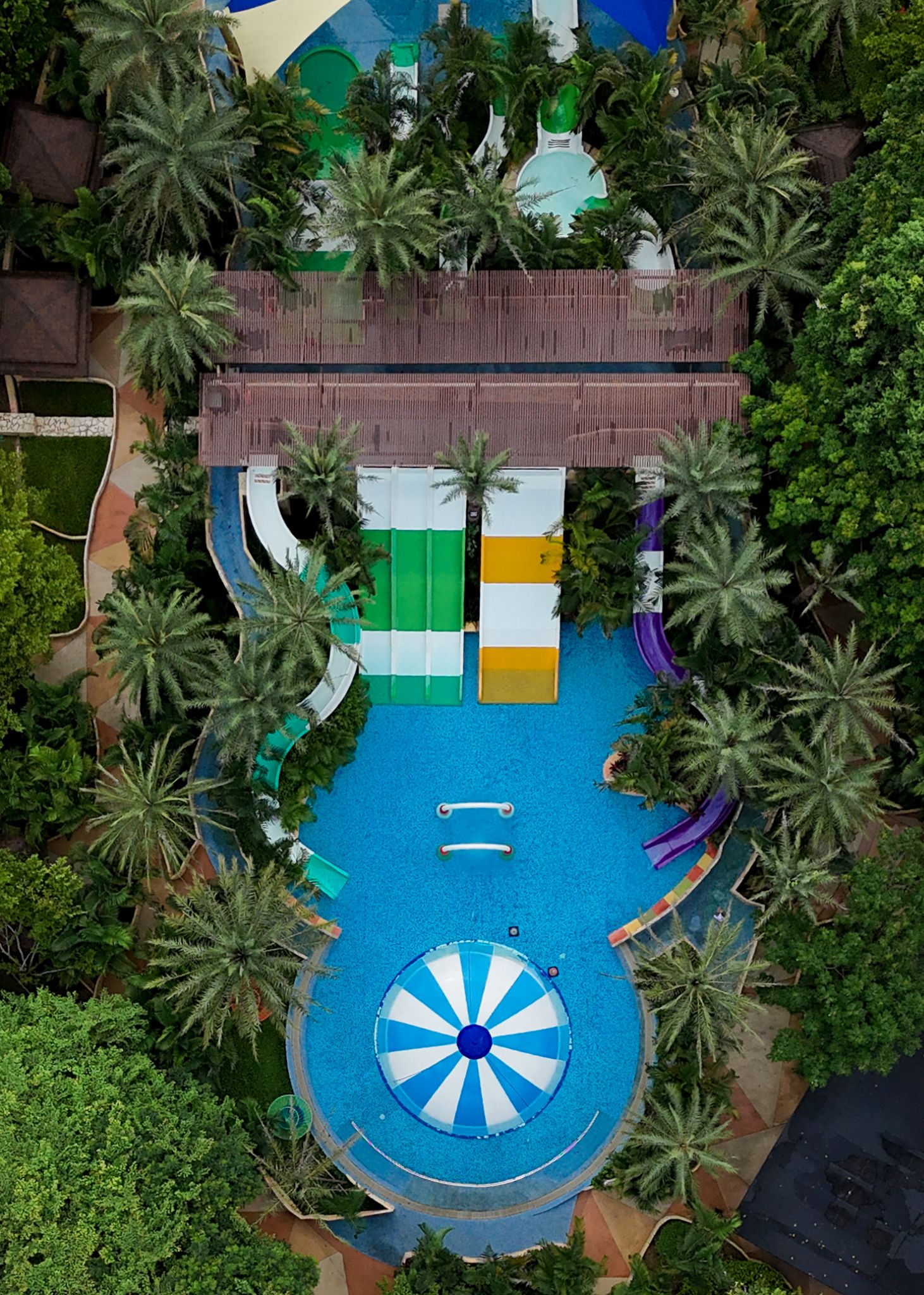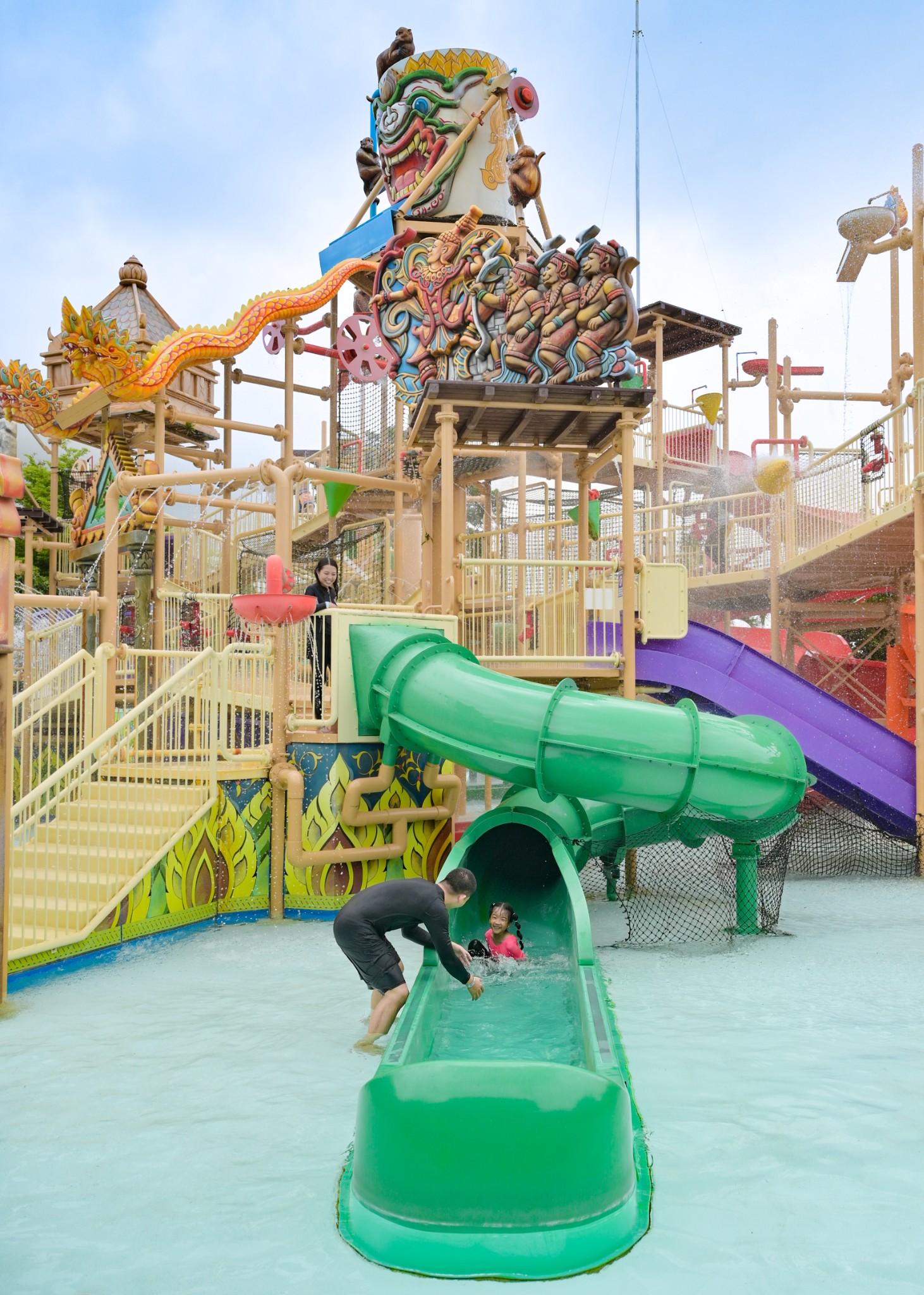 ป้อมปราการน้ำขนาดใหญ่ มีสไลเดอร์ถึง 7 จุด พร้อมถังน้ำขนาดยักษ์