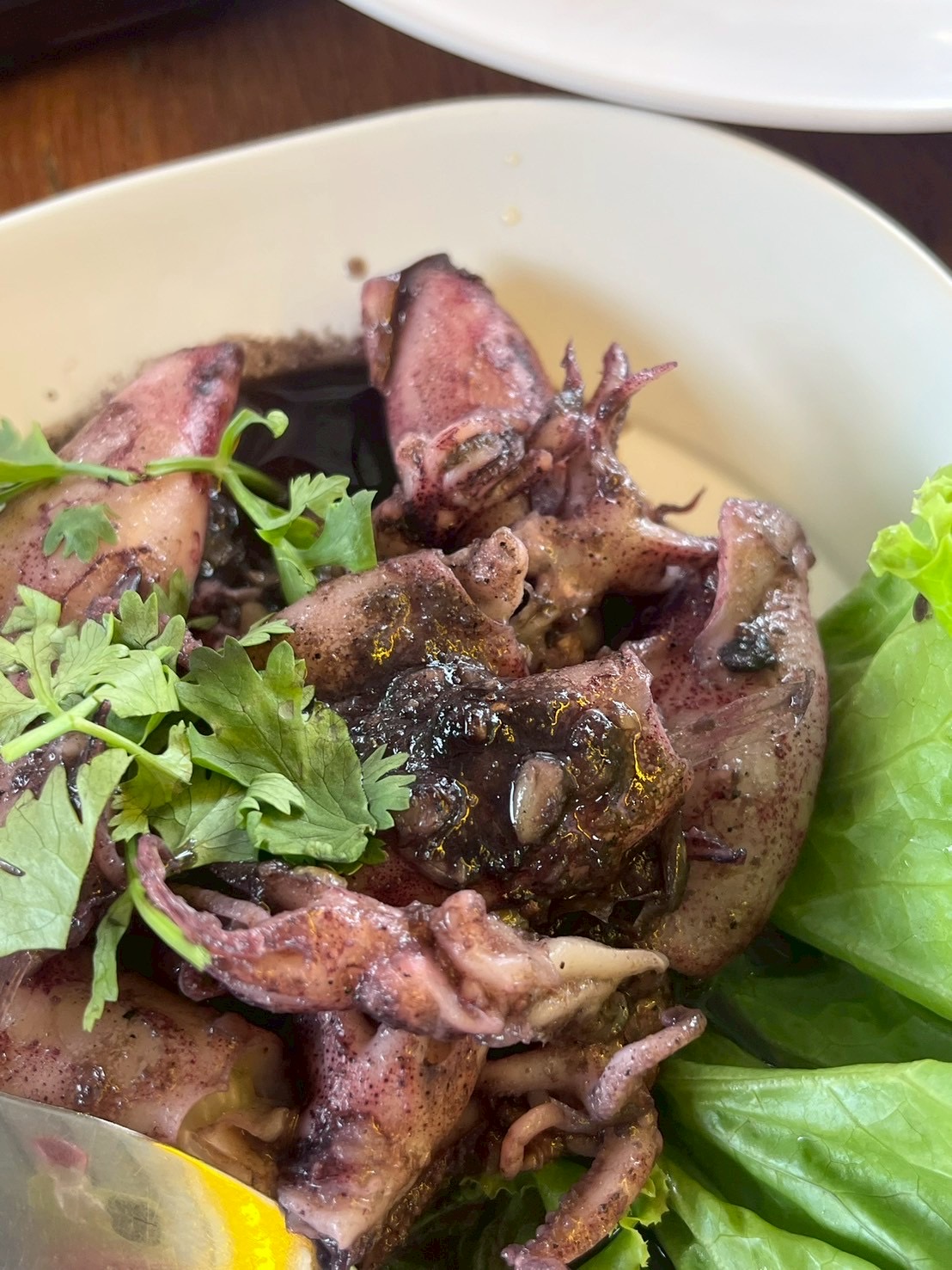 หมึกกะตอยผัดดำ: หมึกสดผัดกับซอสเข้มข้น รสชาติกลมกล่อม