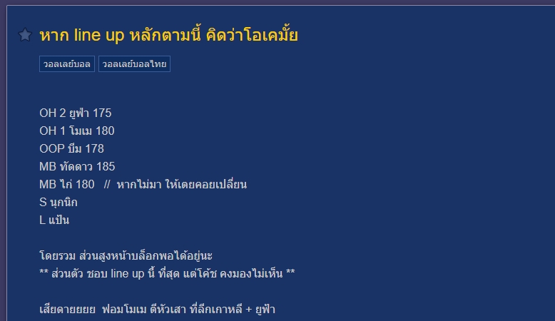 มาลองเดาLine up week4 ทีมไทยกันครับ