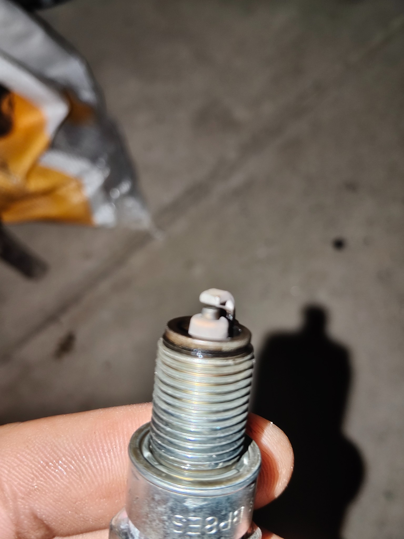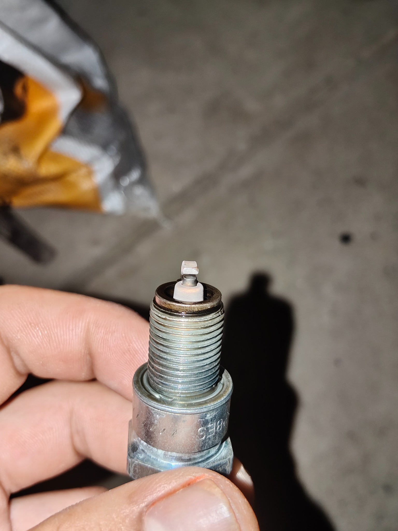 สีหัวเทียนแบบนี้ถทอว่า บางหรือ หนา รถ2จังหวะ พึ่งไปปรับจูนน้ำมันมาใหม่