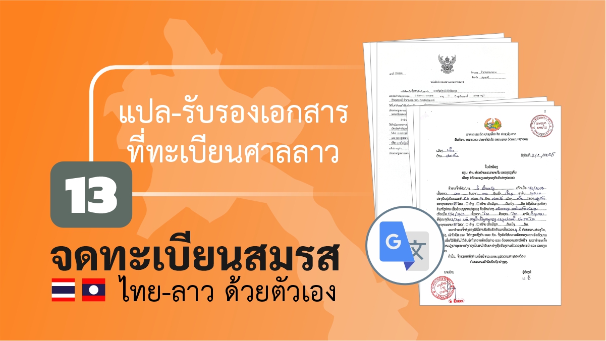 และ เอกสารฝ่ายลาว (บางส่วน) ก็ต้องแปลเป็นภาษาไทย ก็เพราะเมื่อขั้นตอนการเดินเรื่องเอกสารในประเทศลาวเสร็จสิ้นลงแล้ว เอกสารของฝ่ายลาว จะต้องถูกนำมาใช้ในประเทศไทย เพื่อเดินเรื่องจดทะเบียนสมรสที่ไทยต่อ ด้วยเหตุผลเดียวกันก็คือ เพื่อให้เจ้าหน้าที่ฝ่ายไทย ในแต่ละขั้นตอนสามารถอ่านออก และทำความเข้าใจเอกสารของฝ่ายลาวได้อย่างถูกต้องเช่นกัน