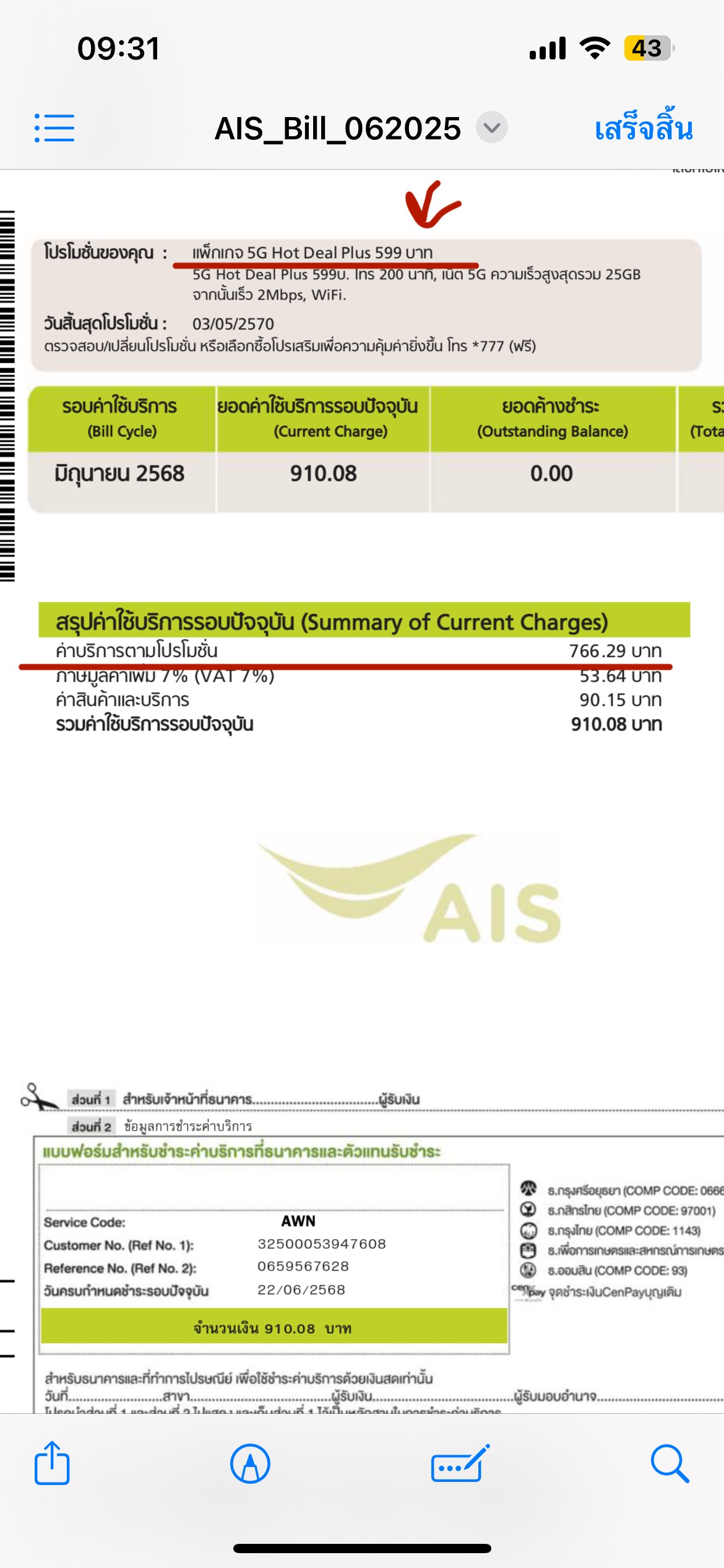 มีคำถามข้องใจเรื่อง “อินเตอร์เน็ตเครือข่าย AIS” เราใช้เน็ต 599/เดือนค่ะ ทีนี้มันมีค่ตามโปรเพิ่มขึ้นมากจาก 599 กลายเป็น 766.29 อยาทราบว่าจำนวนเงินที่เพิ่มขึ้นมา 167.29 บาท มาจากไหน พอยอดค่าบริการด้านบนขึ้น ค่าVAT ก็เพิ่มตามอีก โทรถามคอลเซนเตอร์เองก็ไม่ได้คำถาม พิมพ์แชทถามใน my ais ก็ไม่ได้คำตอบ หวังว่าช่องทางนี้จะช่วยให้คำตอบได้นะคะ ขอบคุณค่ะ
