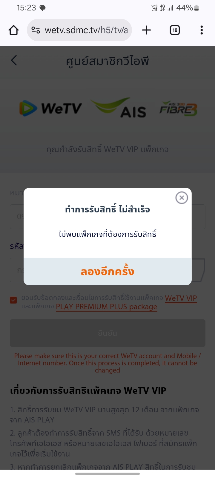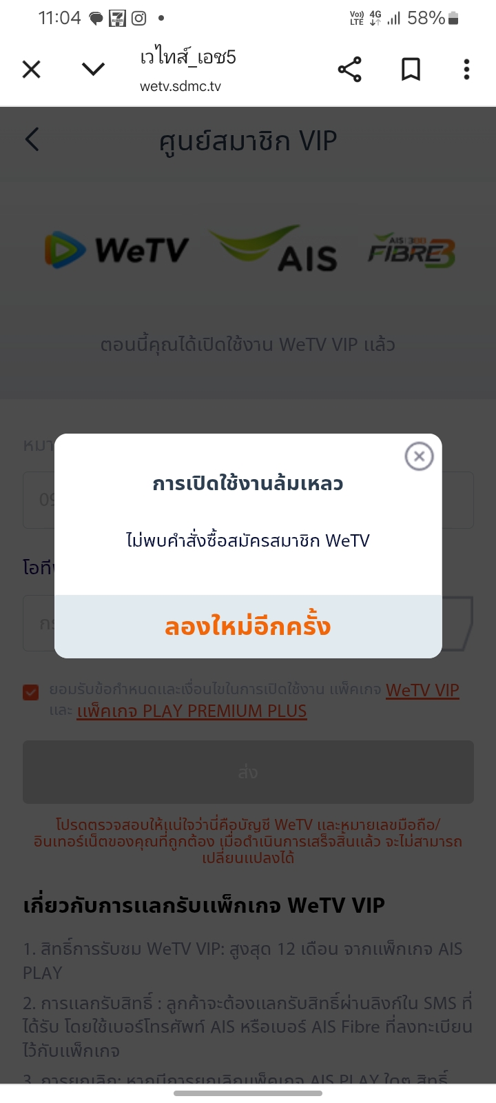 คือเราสมัครแพ็คเสริมaiswetvแต่พอจะกดยืนยันรับสิทธืมันขึ้นว่ารับสิทธ์ไม่สำเร็จทั้งๆที่จ่ายเงินแล้วพอติดต่อaisเขาใหตตweเอง