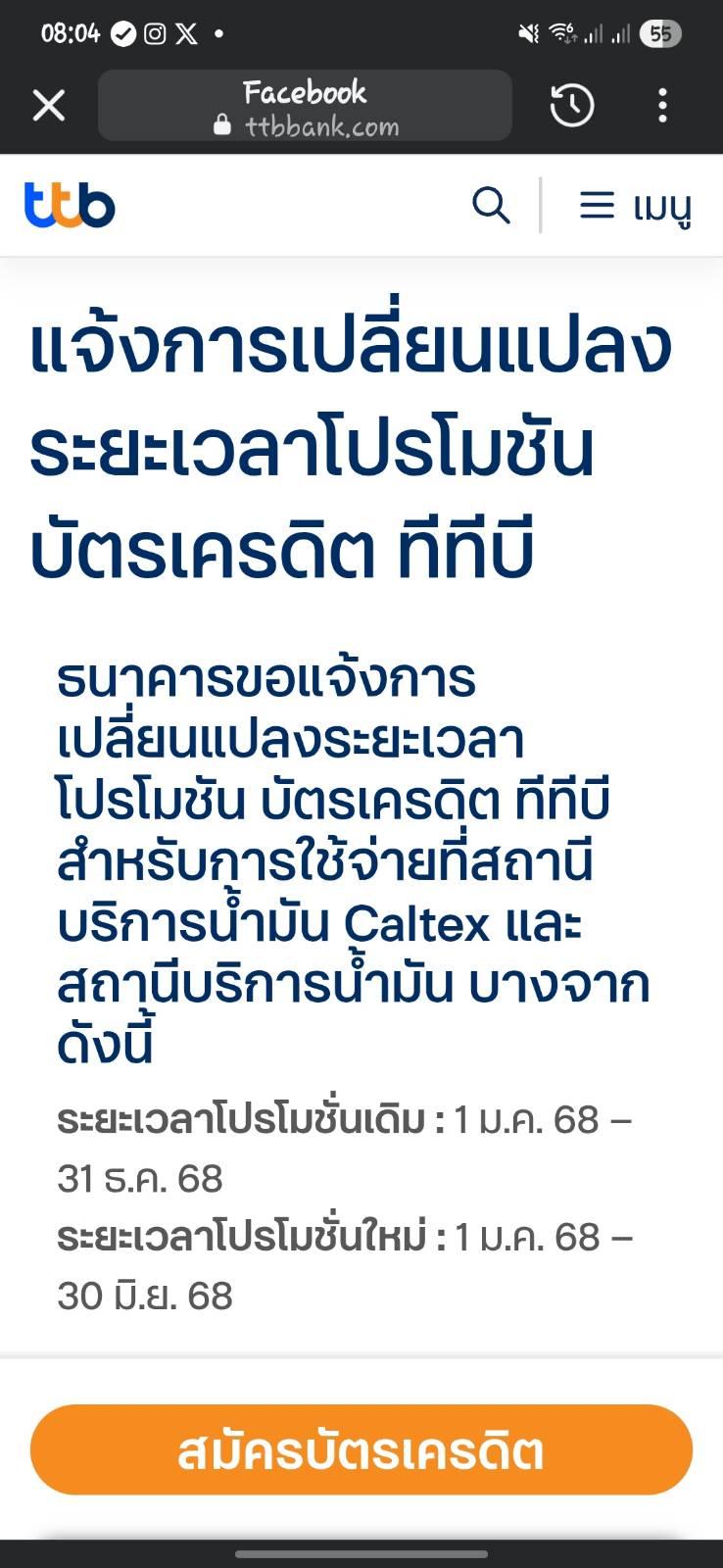 ttb ยกเลิก โปรน้ำมัน caltex บางจาก ถึงสิ้นเดือนนี้เท่านั้นนะครับ
