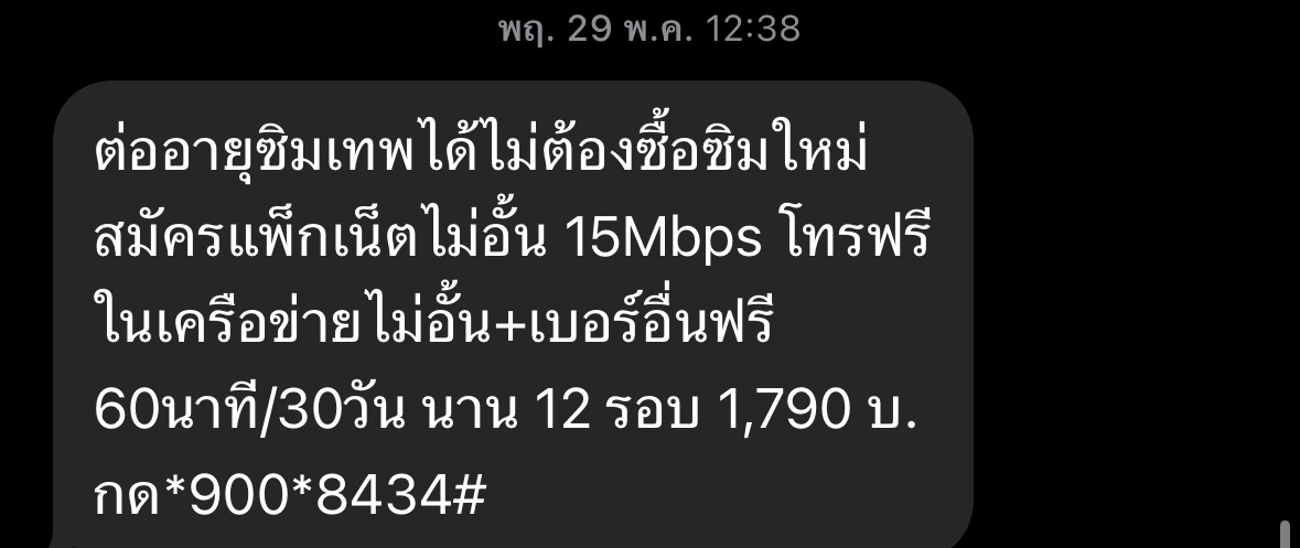 มีsmsแจ้งเตือนล่วงหน้า ให้ทำการต่อโปร