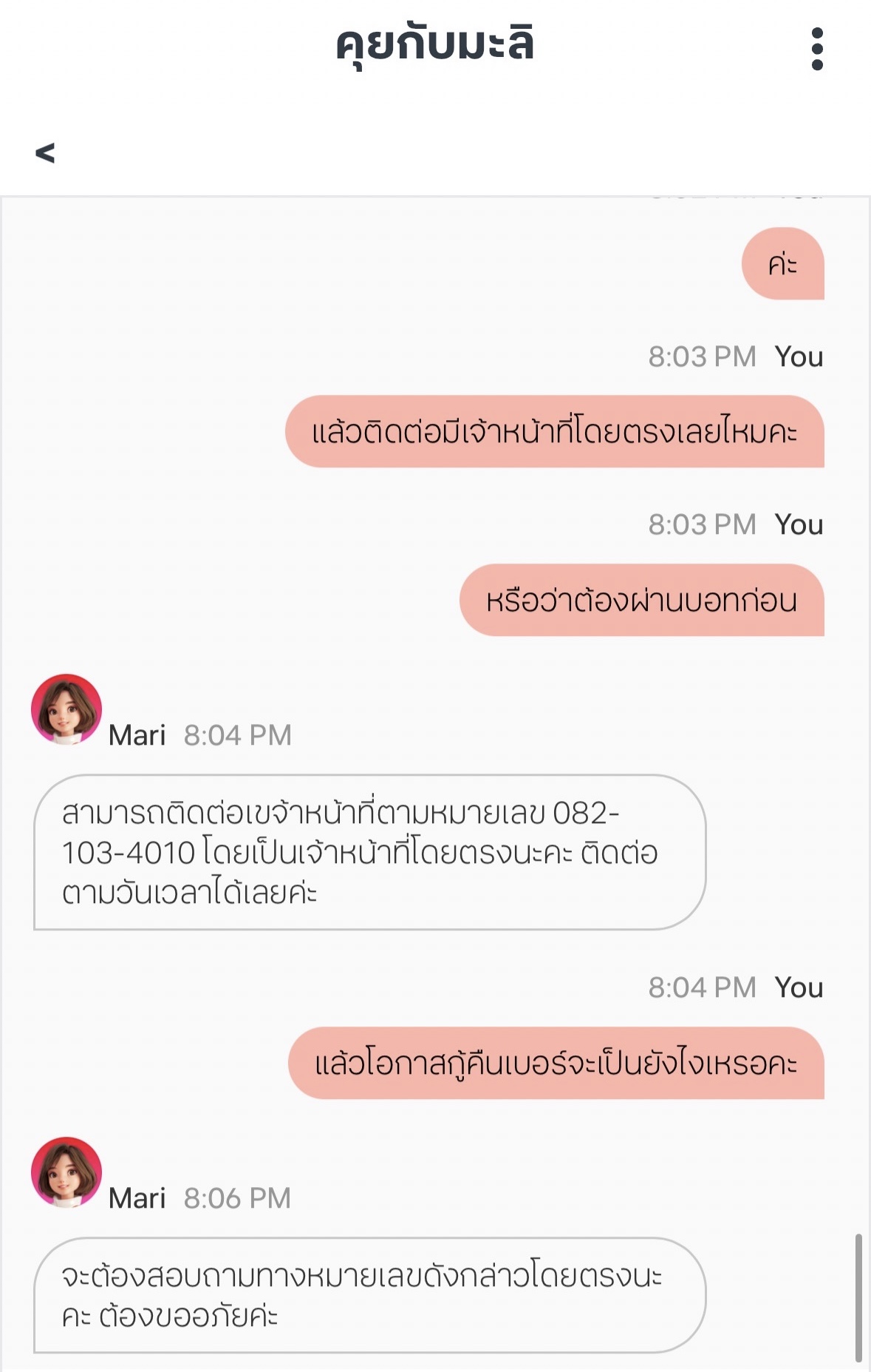 และตอนนี้ 10 มิถุนายน 2568 เวลา 09.05 น เบอร์ที่ได้มา ก็ยังติดต่อไม่ได้