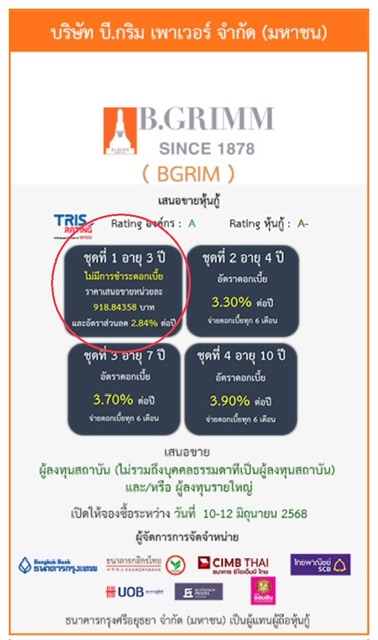 หุ้นกู้ บี.กริม ชุดที่ 1 อายุ 3 ปี
