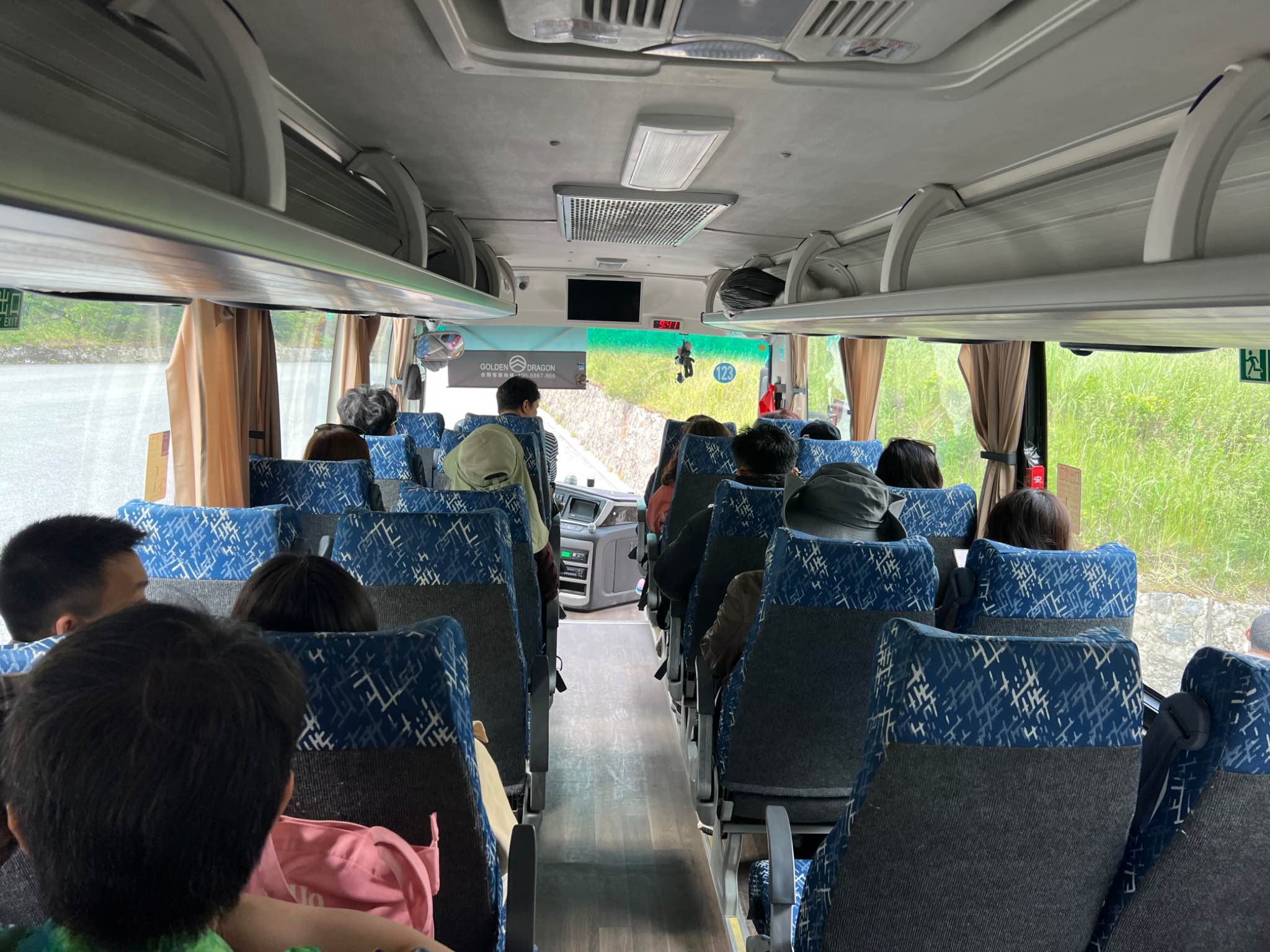 หลังจากนั้นก็เดินไปตามทางขึ้นรถบัสนะครับ เจ้าหน้าที่ยื่นแมสให้คนละอัน ตอนแรกก็ งง ว่าให้ทำไม สงสัยกลัวโควิด