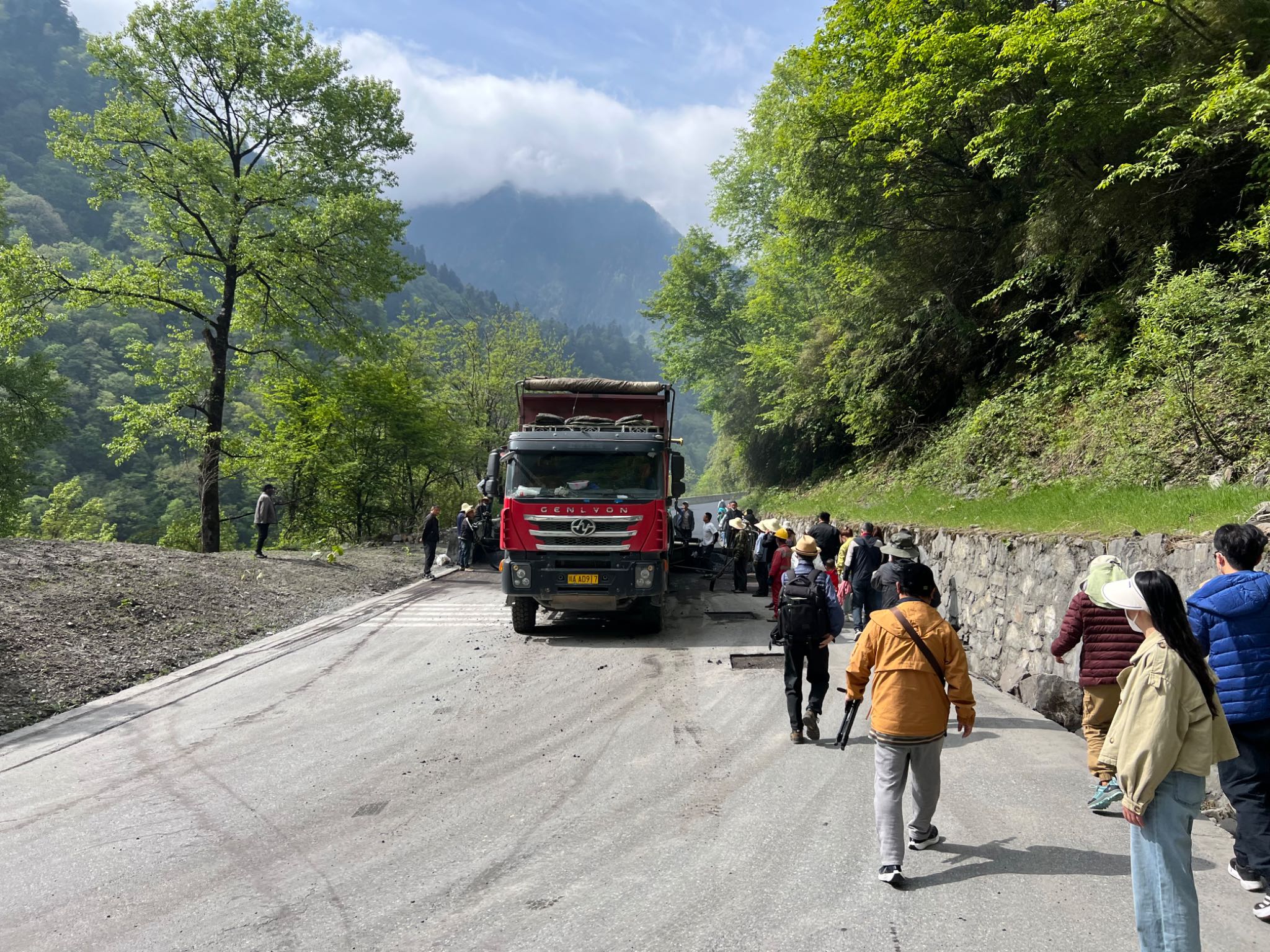 นี่ไง.... จุดนี้ต้องลงเดิน แล้วหยิบแมสมาใส่ เพราะเหม็นยางมะตอย เดินขำกันใหญ่