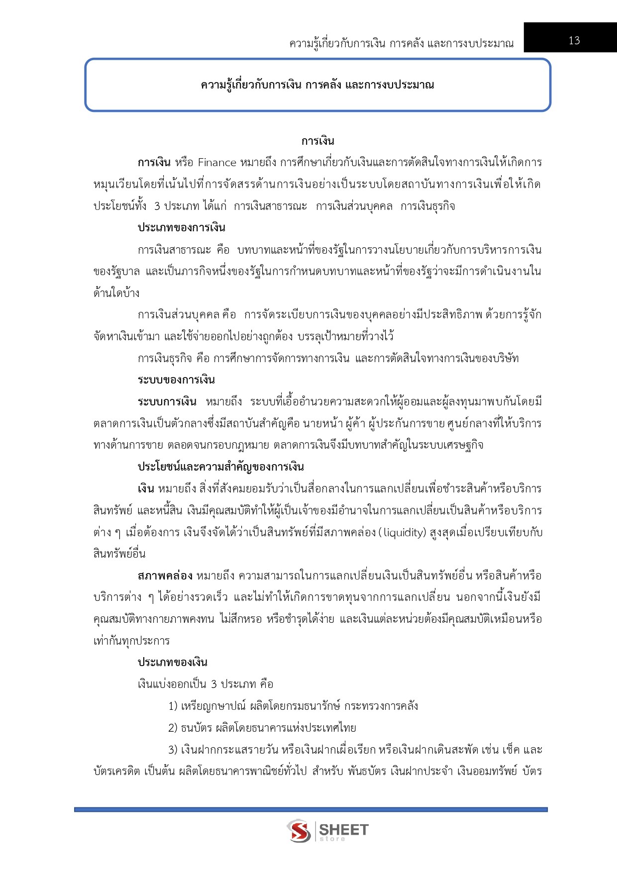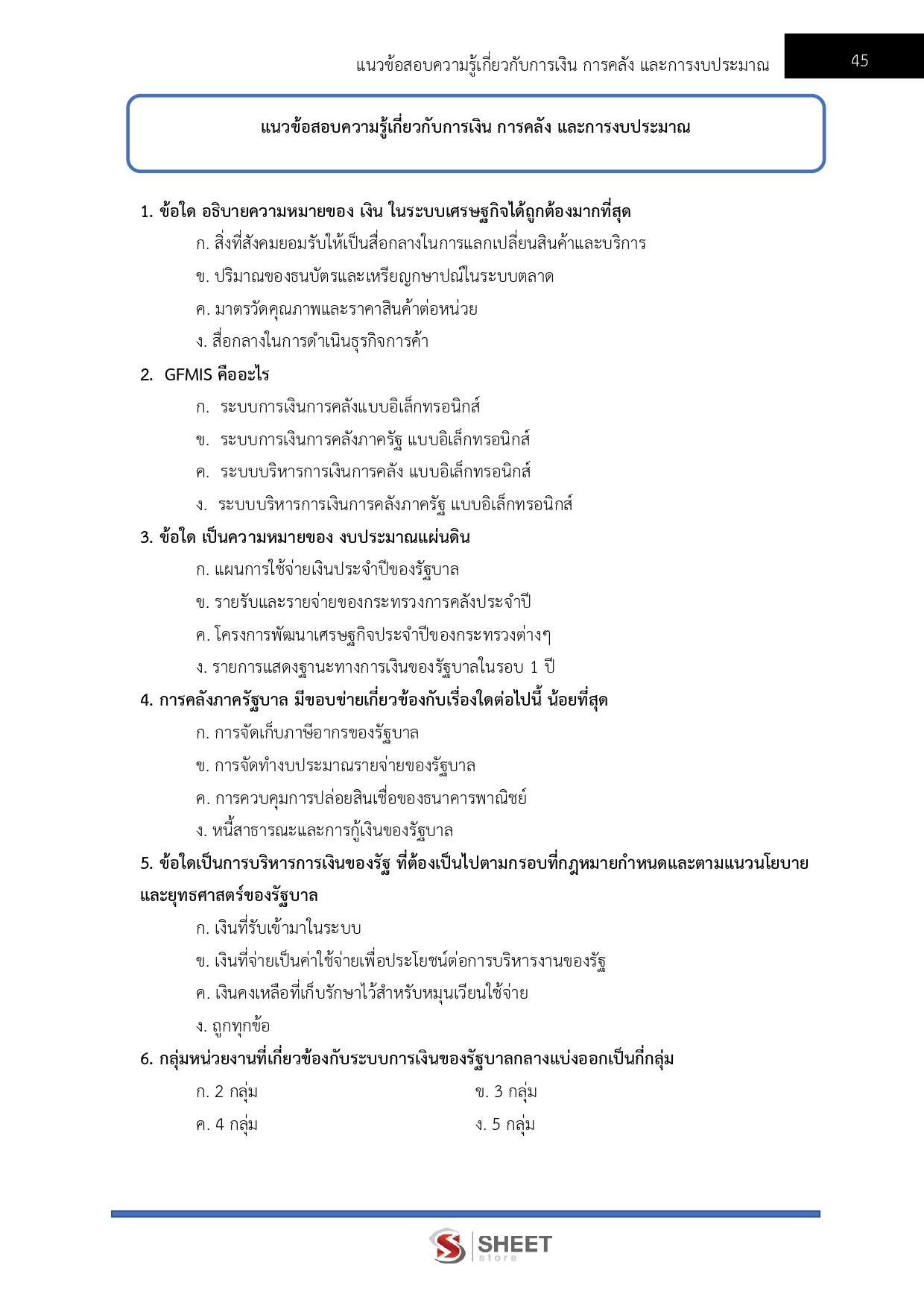 – ความรู้เกี่ยวกับการเงิน การคลัง และการงบประมาณ