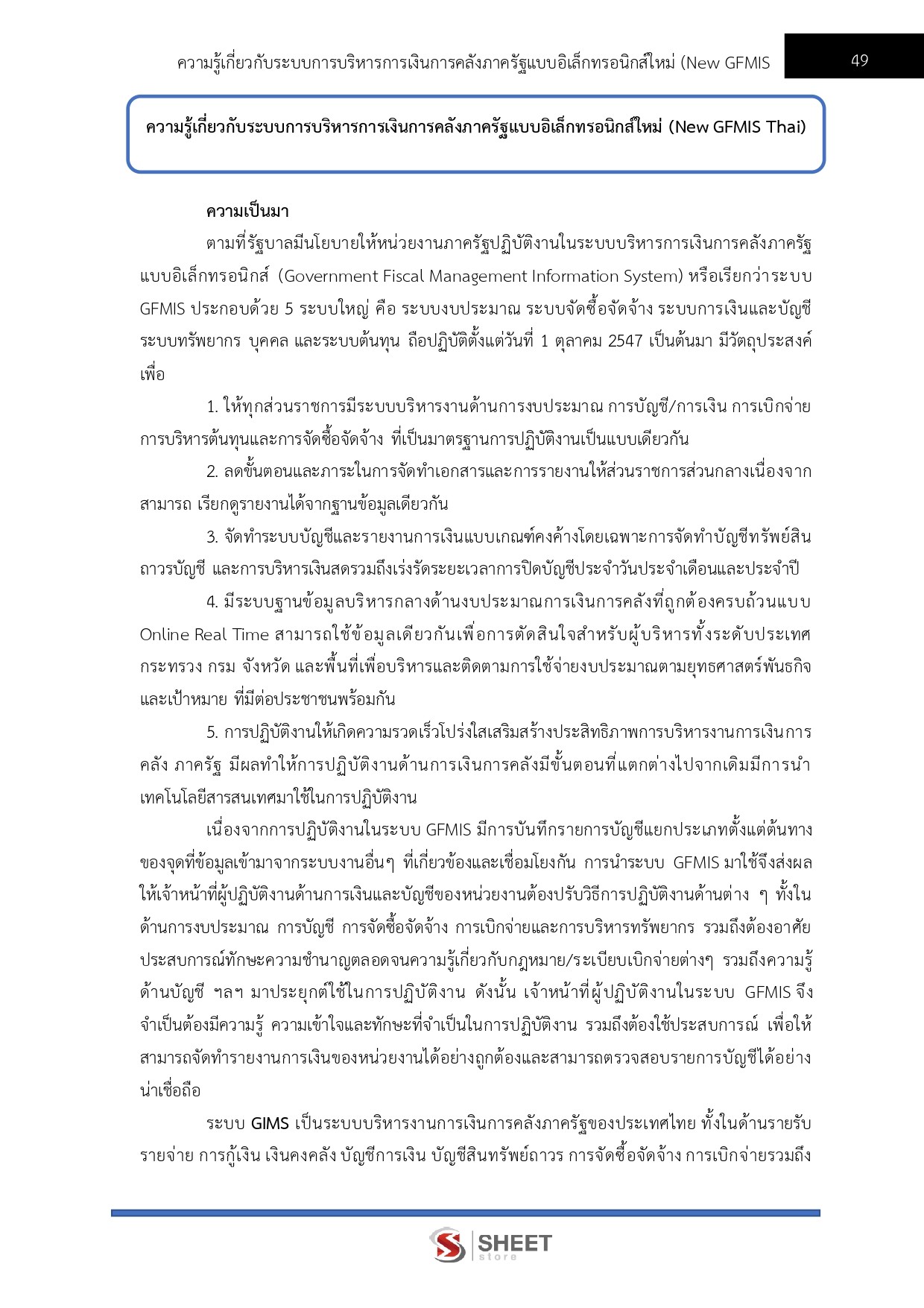– ความรู้เกี่ยวกับระบบการบริหารการเงินการคลังภาครัฐแบบอิเล็กทรอนิกส์ใหม่ (New GFMIS Thai)